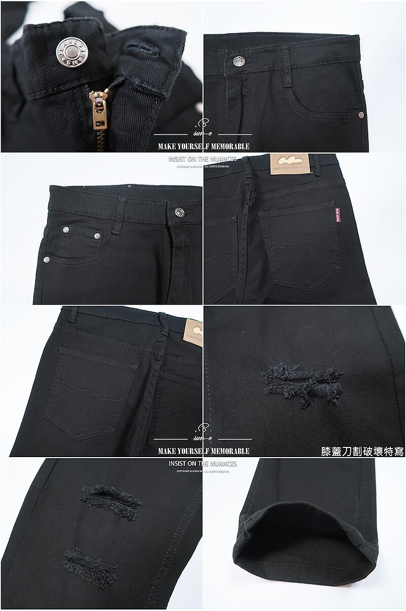 sun-e膝蓋刀割破壞九分褲、修身窄管九分破褲、小直筒刷破牛仔褲、顯瘦素面彈性長褲、破洞丹寧長褲、車繡後口袋、單寧、ANKLE-LENGTH RIPPED JEANS、DENIM (337-2060-21)黑色 腰圍:28~37(英吋) 男 [實體店面保障]