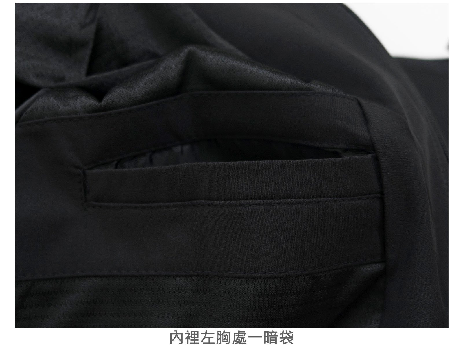 外套內部舖一層薄內裡,內裡左胸處一暗袋。