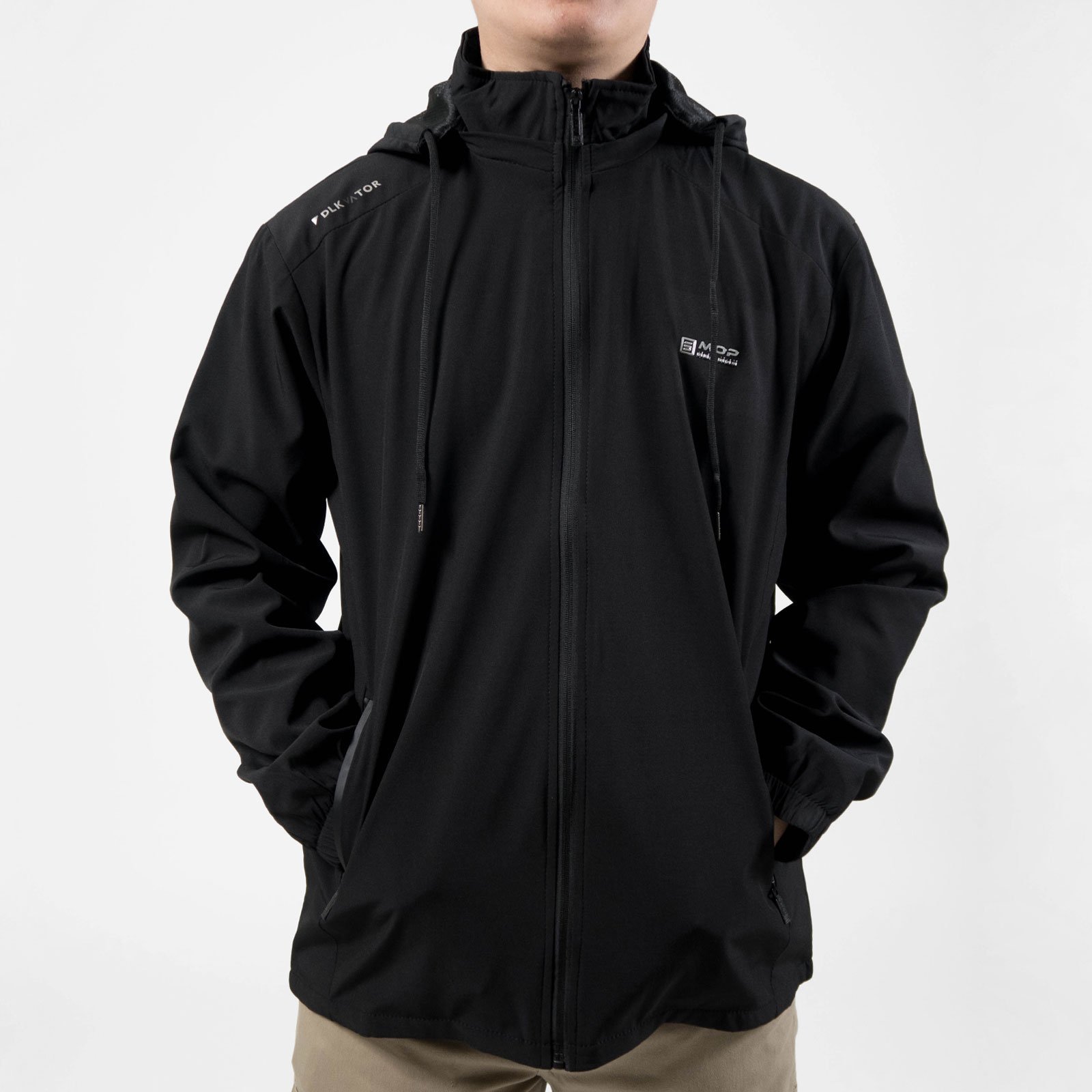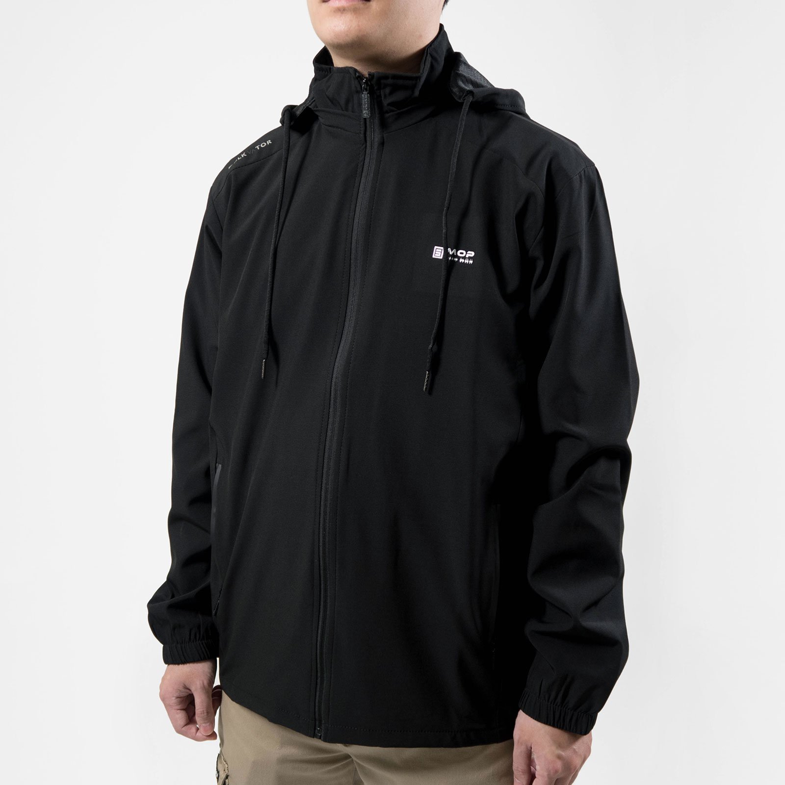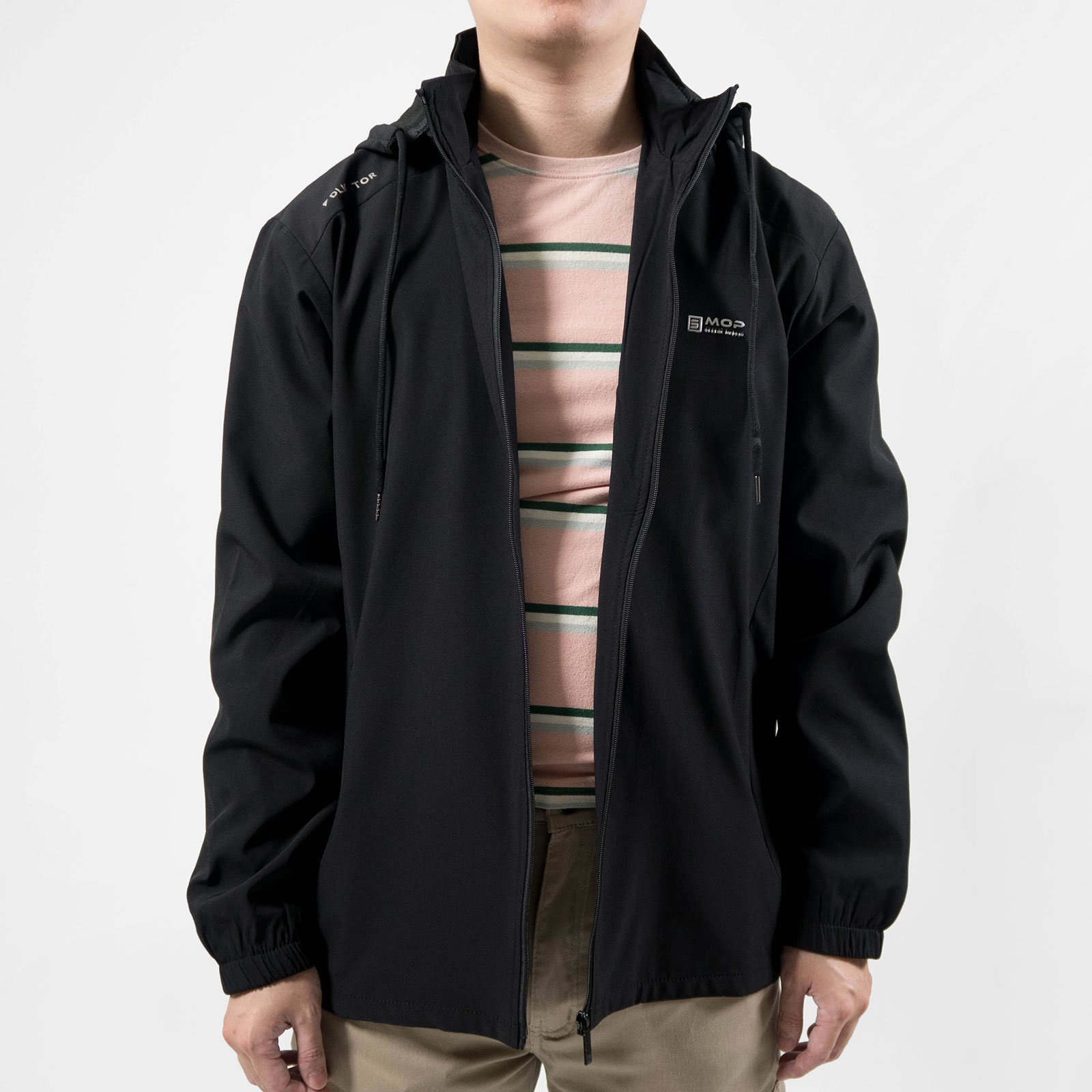 附帽可拆,拉繩縮口設計。