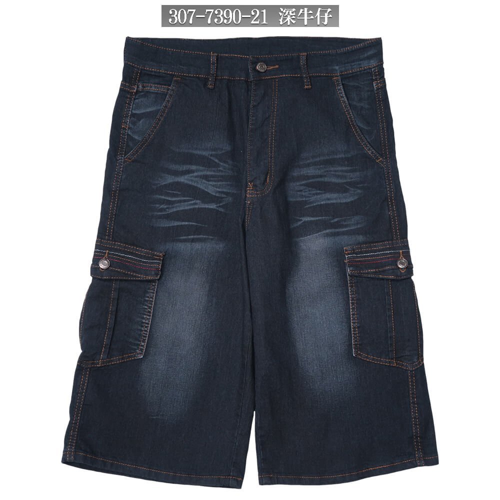 sun-e薄款牛仔工作短褲、牛仔短褲、多口袋牛仔工作褲、貓爪刷白牛仔褲、側貼袋彈性短褲、車繡口袋丹寧短褲、單寧、工裝褲、口袋褲、Mens Denim Cargo Shorts、Denim Shorts、Jean Shorts、Short Pants、Embroidered Pocketss (307-7390-21)深牛仔 L XL 2L 3L 4L 5L(腰圍:76~104公分 / 30~41英吋) 男 [實體店面保障]