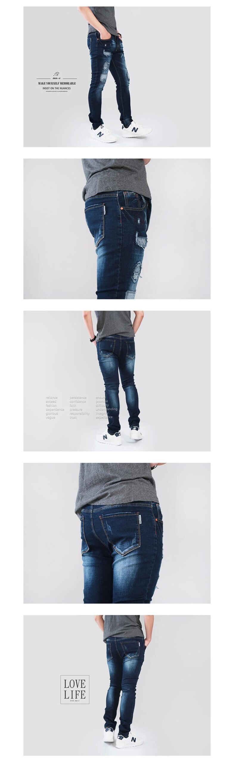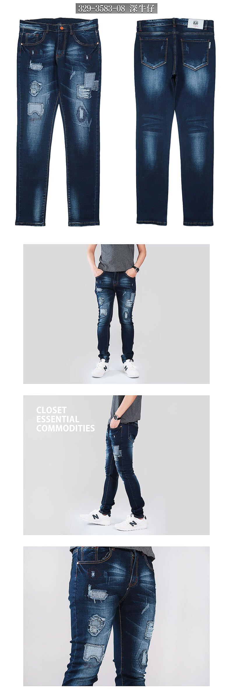 ![補丁貼布窄管牛仔褲 顯瘦磨破牛仔長褲 割破修身破褲 貓爪刷白牛仔褲 彈性丹寧 潮流個性長褲 割痕後口袋 單寧 Skinny Stretch Patch Jeans Slim fit Denim (329-3583-08)深牛仔 腰圍M L XL 2L(28~35英吋) 男 [實體店面保障] sun-e:圖片 4](https://sune1984.com/wp-content/uploads/2026/03/329-3583-08_P3.jpg)