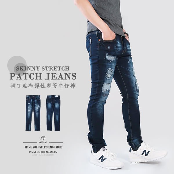 ![補丁貼布窄管牛仔褲 顯瘦磨破牛仔長褲 割破修身破褲 貓爪刷白牛仔褲 彈性丹寧 潮流個性長褲 割痕後口袋 單寧 Skinny Stretch Patch Jeans Slim fit Denim (329-3583-08)深牛仔 腰圍M L XL 2L(28~35英吋) 男 [實體店面保障] sun-e](https://sune1984.com/wp-content/uploads/2026/03/FIRST-422.jpg)