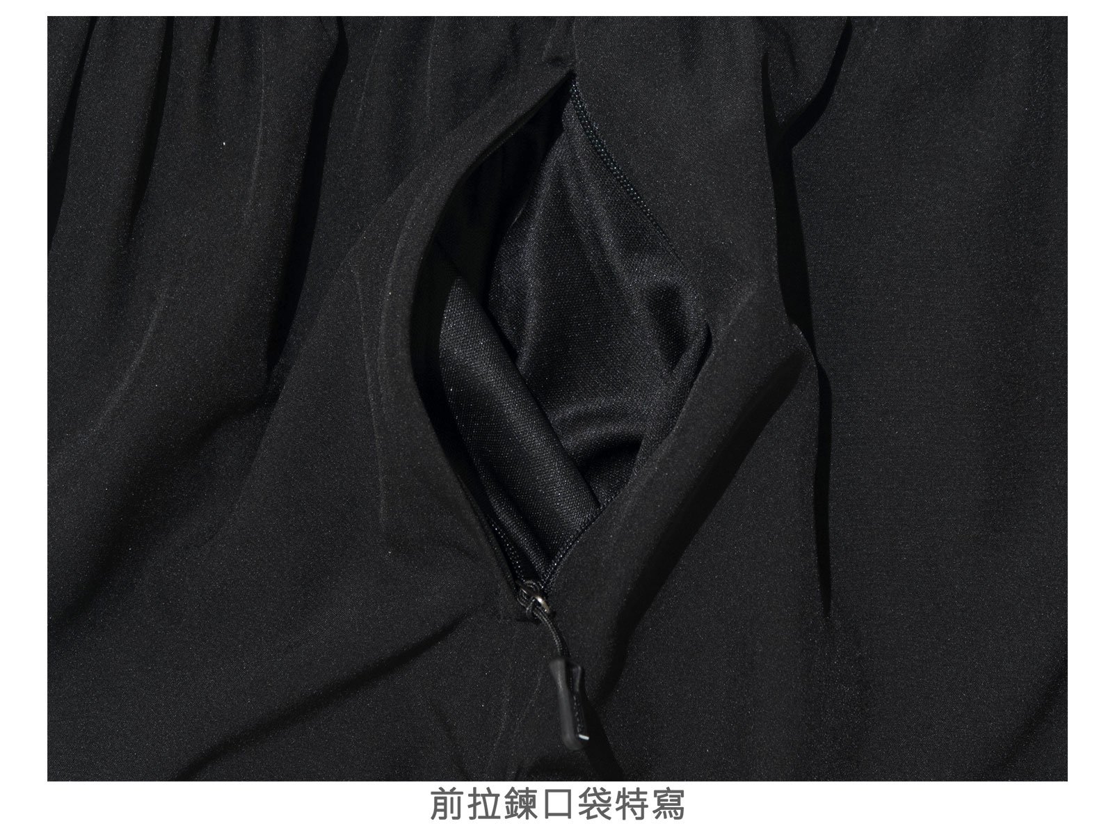 前:左、右各一隱藏式拉鍊口袋。
