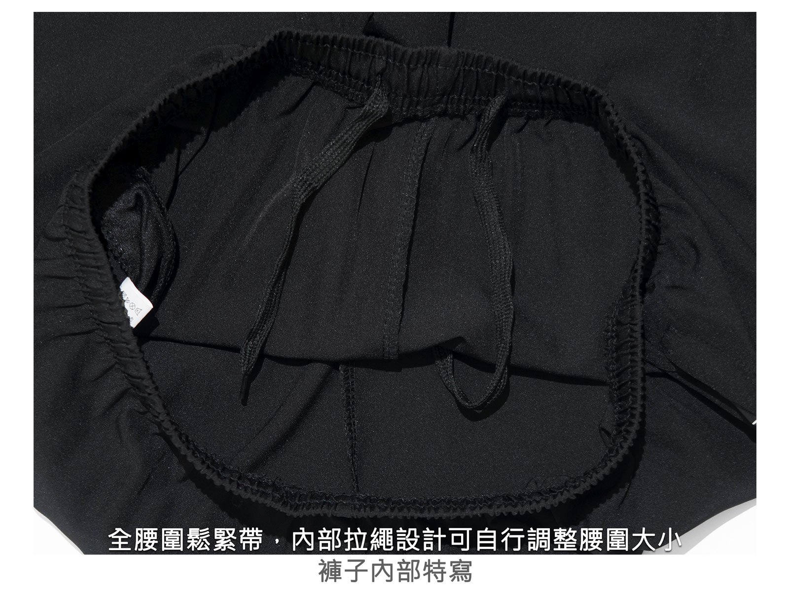 全腰圍鬆緊帶,內部綁帶設計可自行調整腰圍大小。