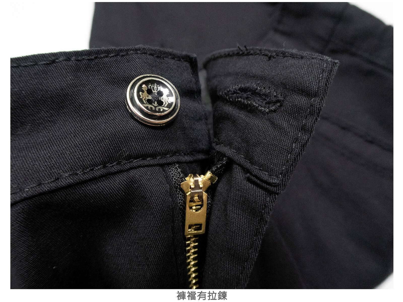 腰圍有皮帶環(褲耳),褲檔有拉鍊。