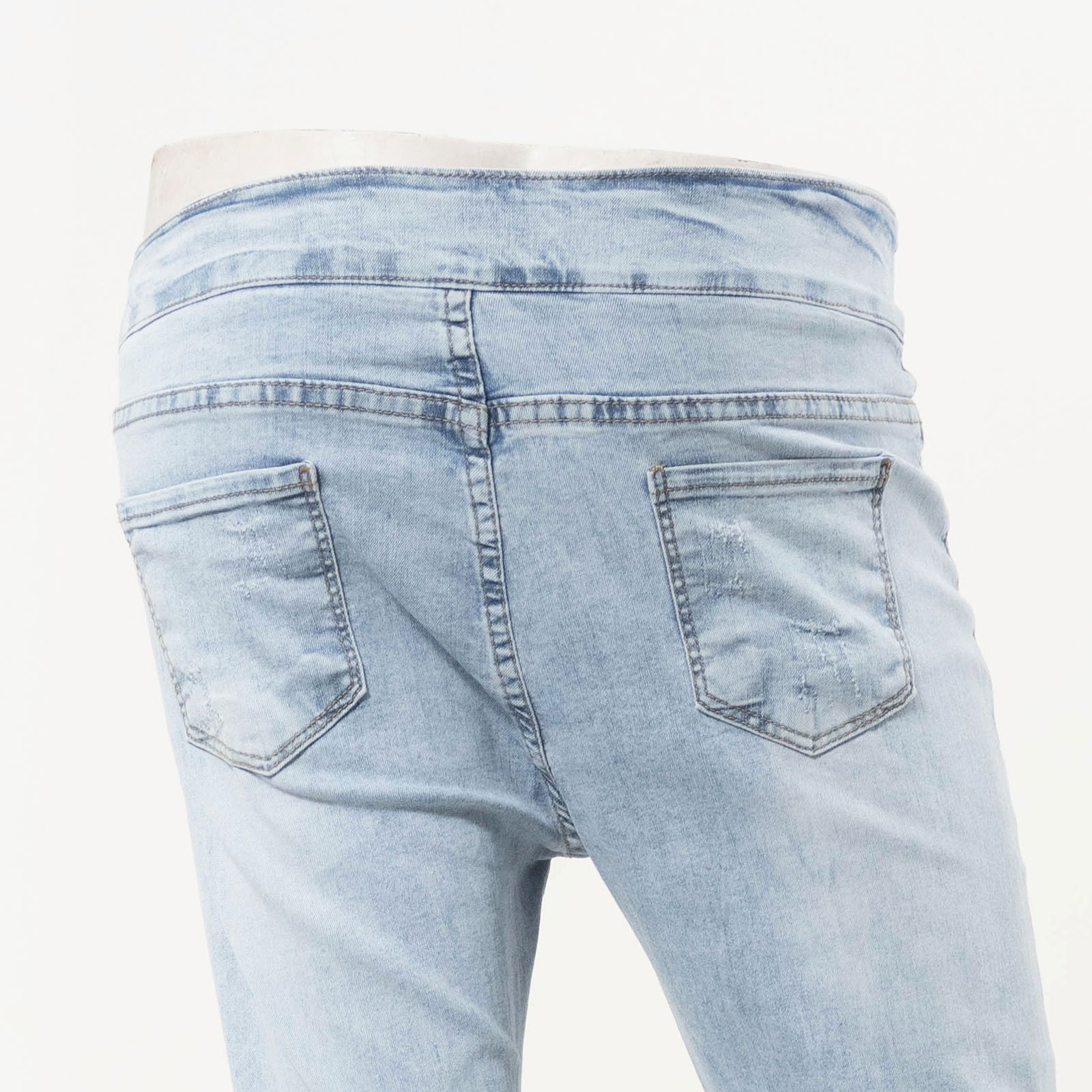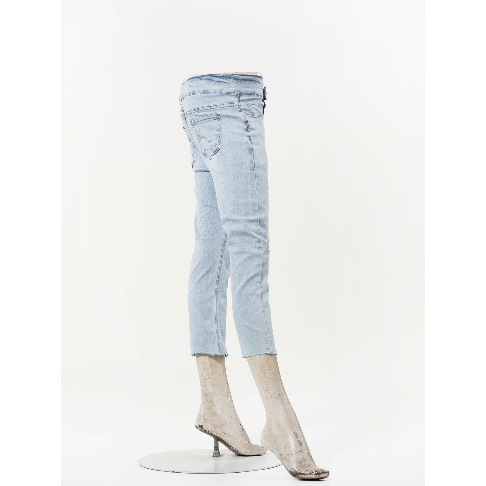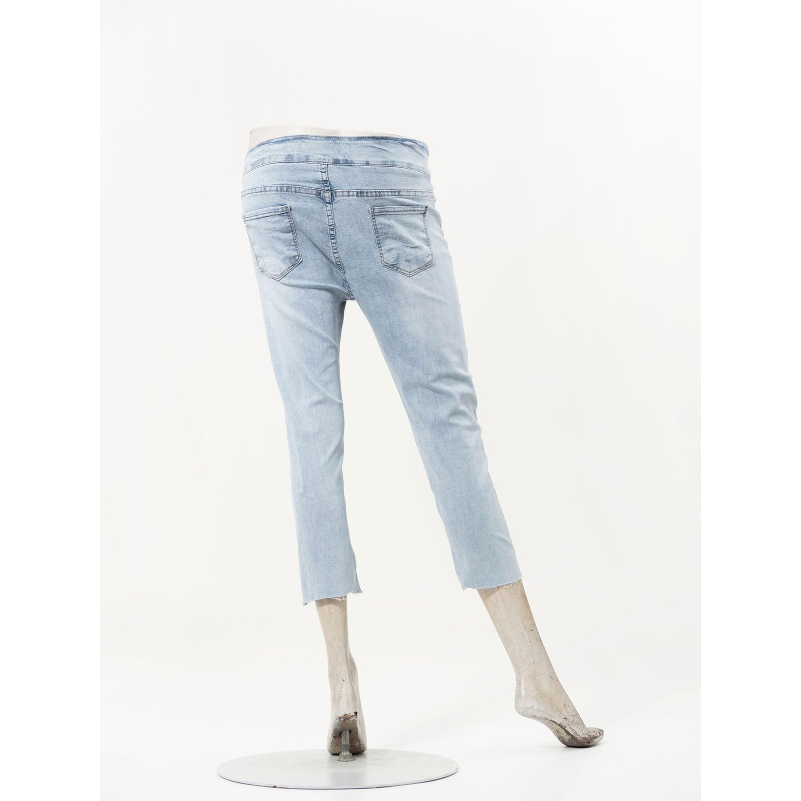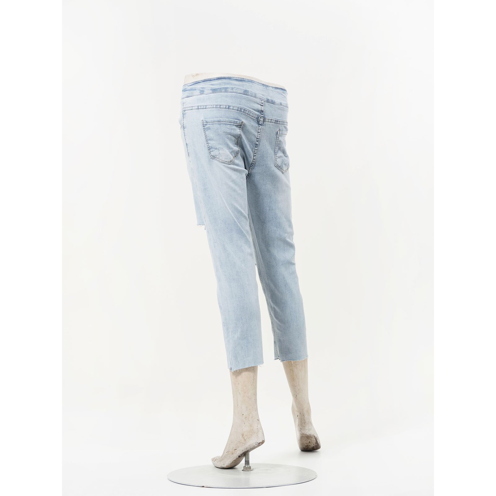 sun-e超輕薄牛仔七分褲、七分牛仔褲、割破丹寧長褲、鬚邊割破褲、不修邊牛仔褲、彈性顯瘦長褲、Ripped Cropped Jeans、Lightweight Denim、Stretch Jean Pants、Frayed Hem Of The Jeans、Slimming Jeans (050-5856-32)淺牛仔 S M L XL (腰圍:66~84公分 / 26~33英吋) 女 [實體店面保障]