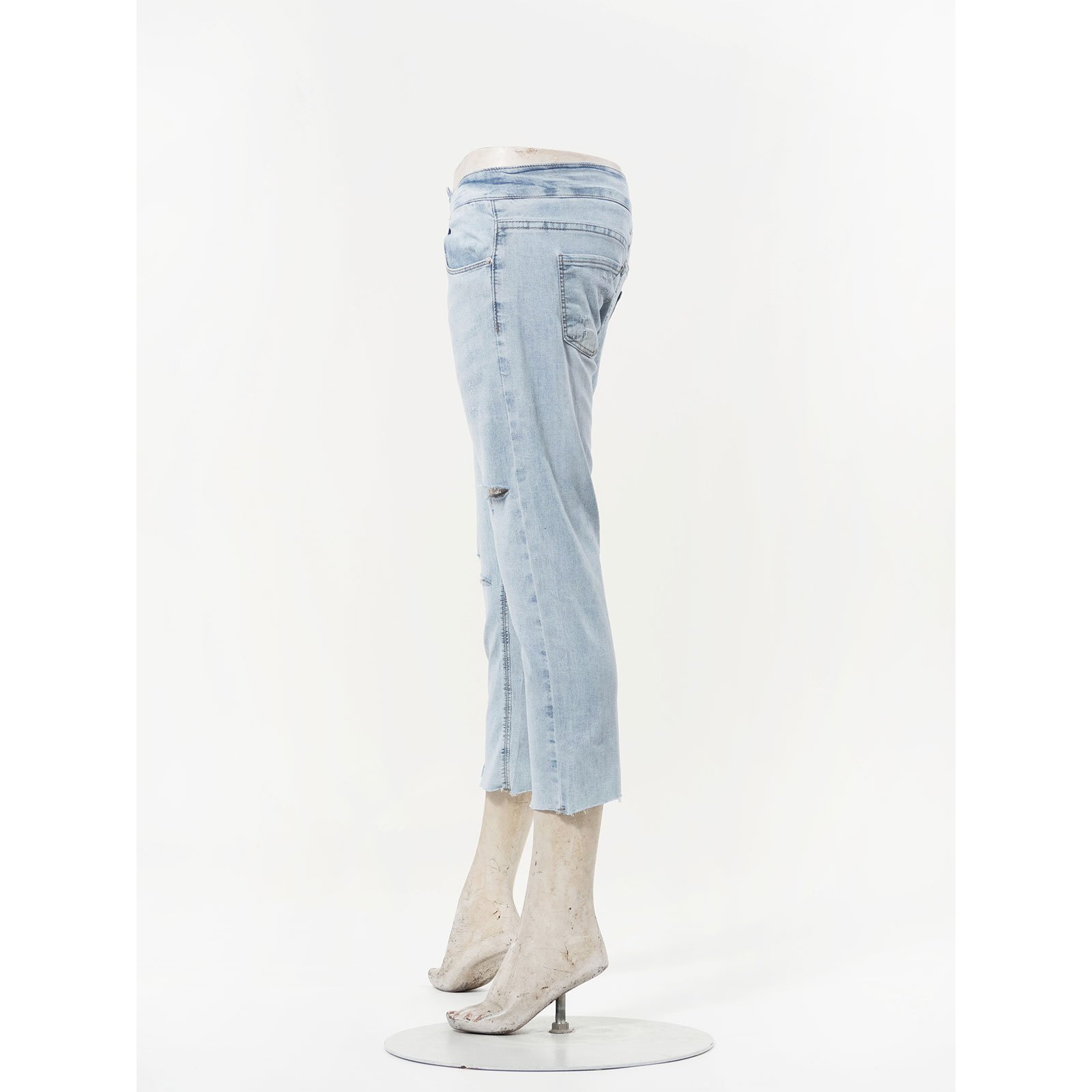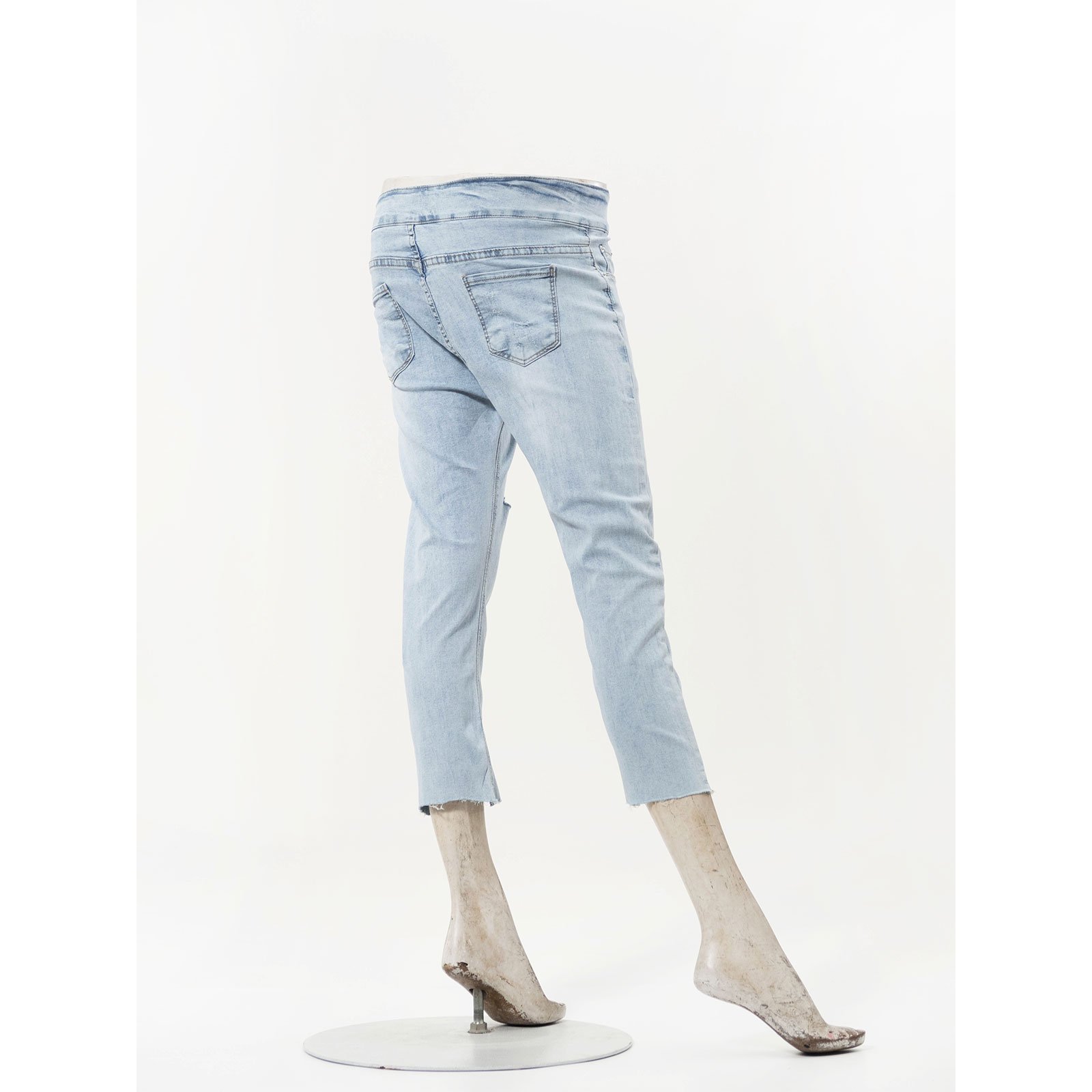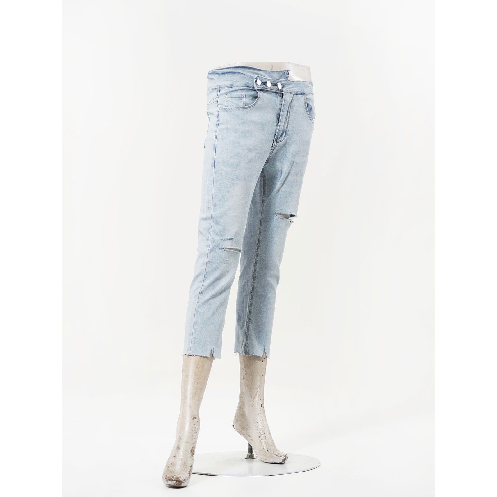 超輕薄牛仔七分褲 七分牛仔褲 割破丹寧長褲 鬚邊割破褲 不修邊牛仔褲 彈性顯瘦長褲 Ripped Cropped Jeans Lightweight Denim Stretch Jean Pants Frayed Hem Of The Jeans Slimming Jeans (050-5856-32)淺牛仔 S M L XL (腰圍:66~84公分 / 26~33英吋) 女 [實體店面保障] sun-e