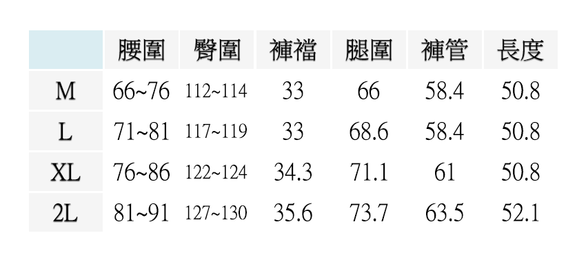(模特兒身高180體重65公斤,腰圍81.3公分/32英吋,展示尺寸:L)