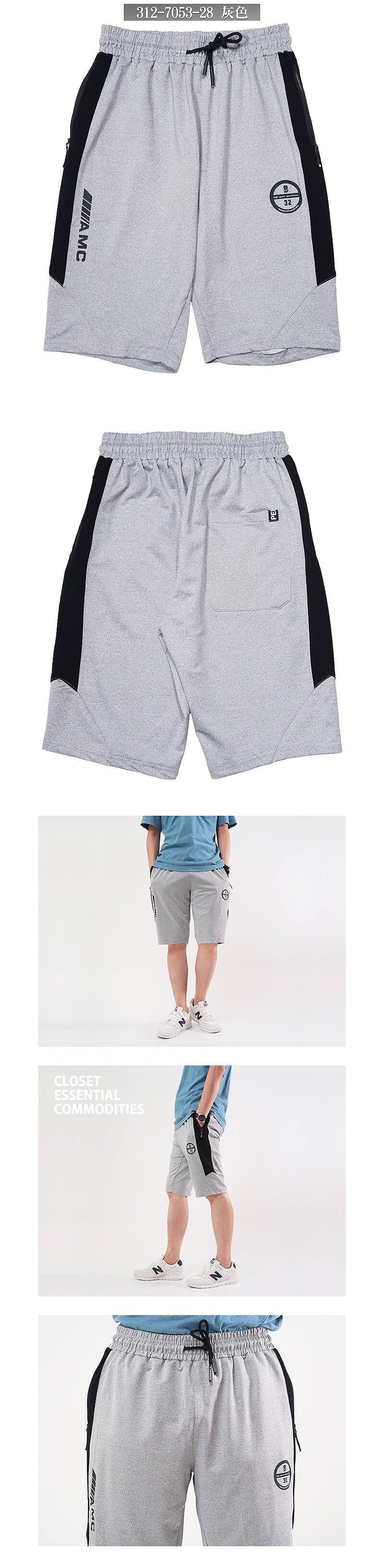 sun-e運動短褲、顯瘦配色彈性短褲、全腰圍鬆緊帶休閒短褲、球褲、五分褲、休閒褲、Mens Sport Shorts、Track Shorts、Running、Shorts、Short Pants (312-7053-21)黑色、(312-7053-28)灰色 XL 2L(腰圍:81~96公分 / 32~38英吋) 男 [實體店面保障]