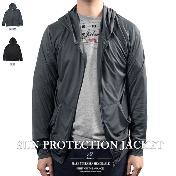sun-e防曬外套、防風遮陽外套、柔軟輕薄休閒外套、素面外套、連帽外套、黑色外套、Sun Protection Jackets、Casual Jackets (321-3529-01)黑色、(321-3529-03)灰綠色 M L XL 2L (胸圍:46~53英吋/117~135公分) 男 [實體店面保障]