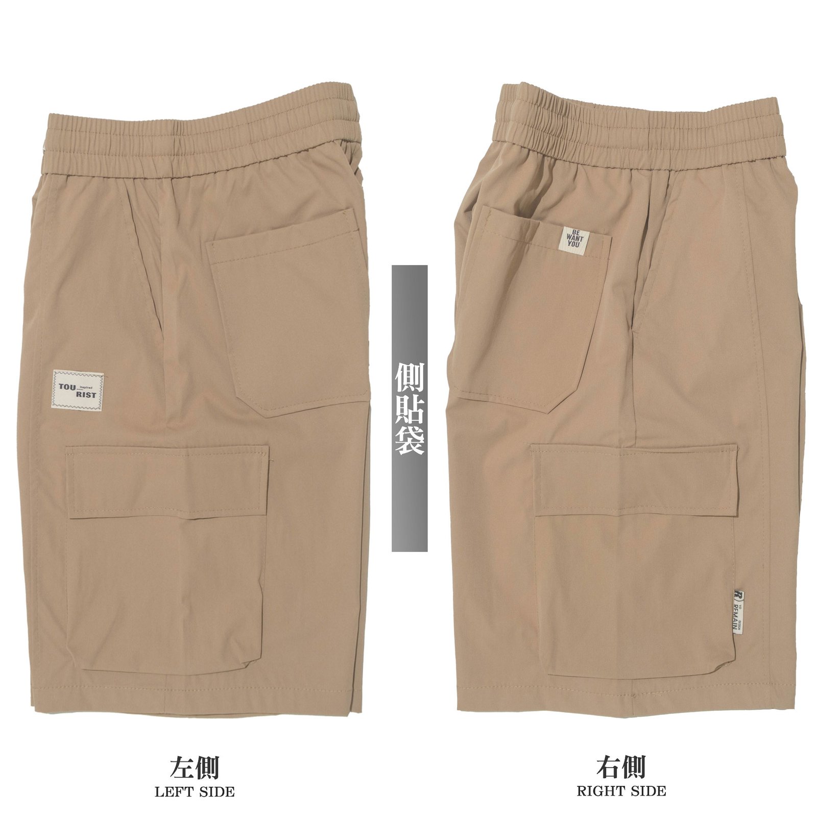 sun-e雙邊口袋鬆緊五分褲 彈性工作短褲 側袋褲 休閒短褲 多口袋工作褲 側貼袋休閒褲 口袋褲 Cargo Shorts Cargo Pants Short Pants (312-7217-16)卡其色 XL 2L (腰圍:76~89公分 / 30~35英吋) 男 [實體店面保障]