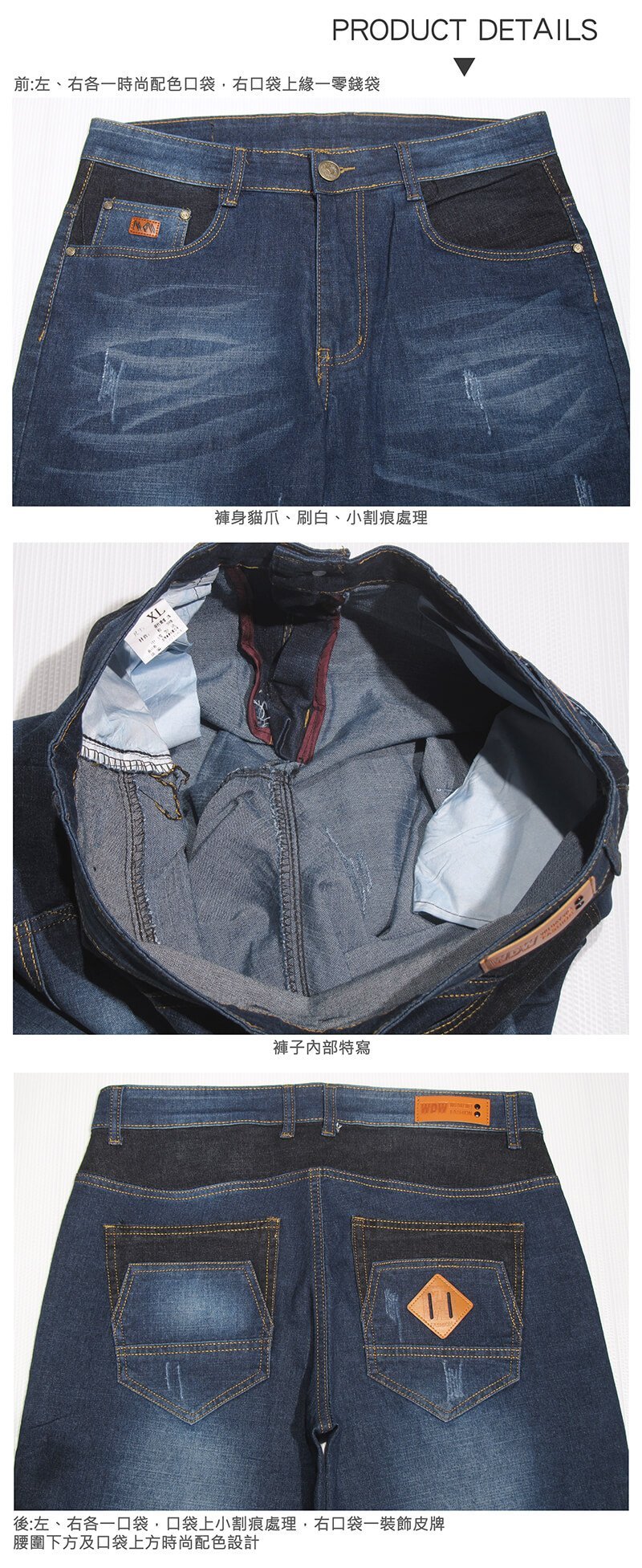 sun-e韓版牛仔短褲、彈性刷白牛仔褲、時尚配色剪接、丹寧短褲、貓爪單寧、DENIM SHORT、JEAN SHORTS (390-9084-32)深牛仔 腰圍:M L XL 2L 3L 4L (28~39英吋) [實體店面保障]