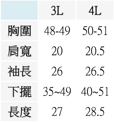 (模特兒身高180體重65公斤,各色穿著尺寸:3L)