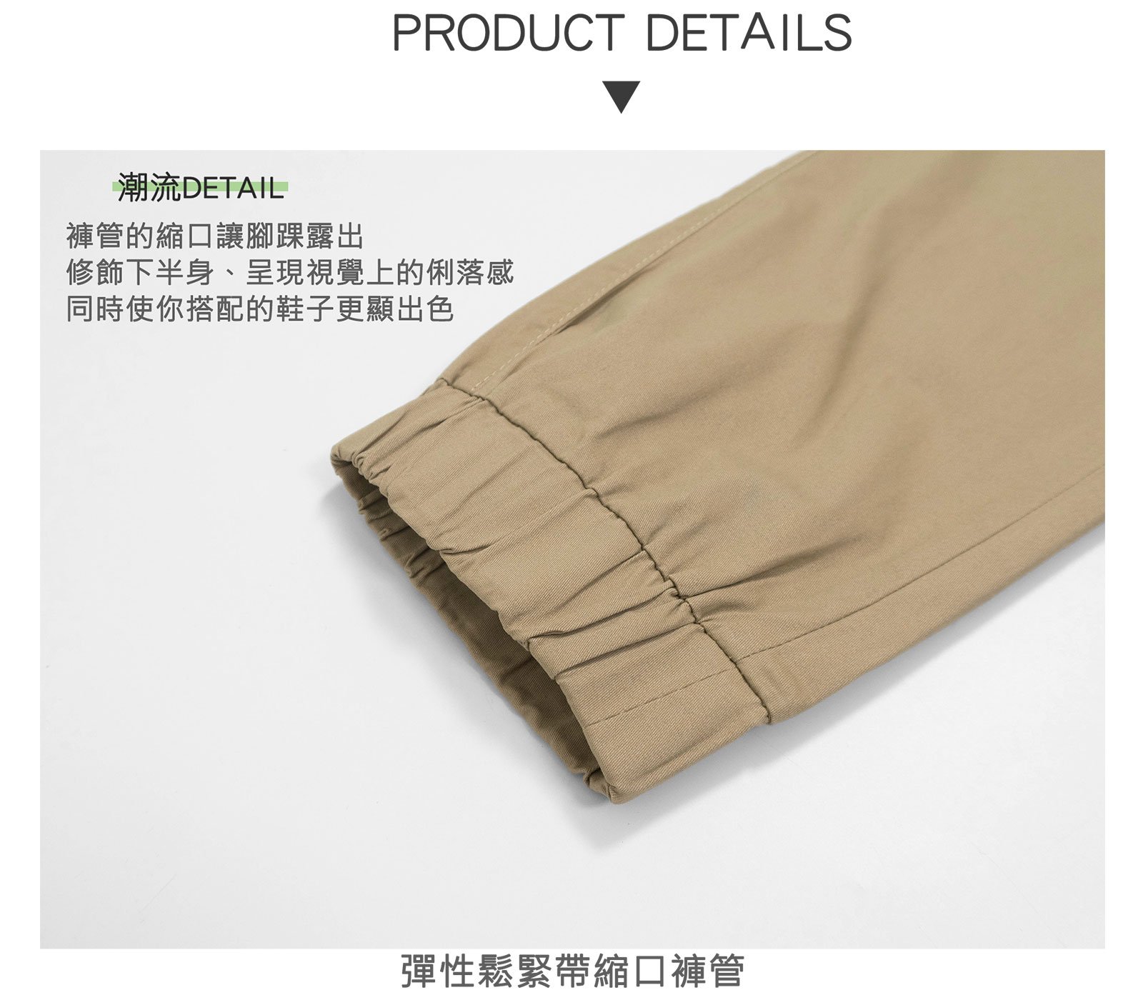 彈性鬆緊帶縮口褲管。