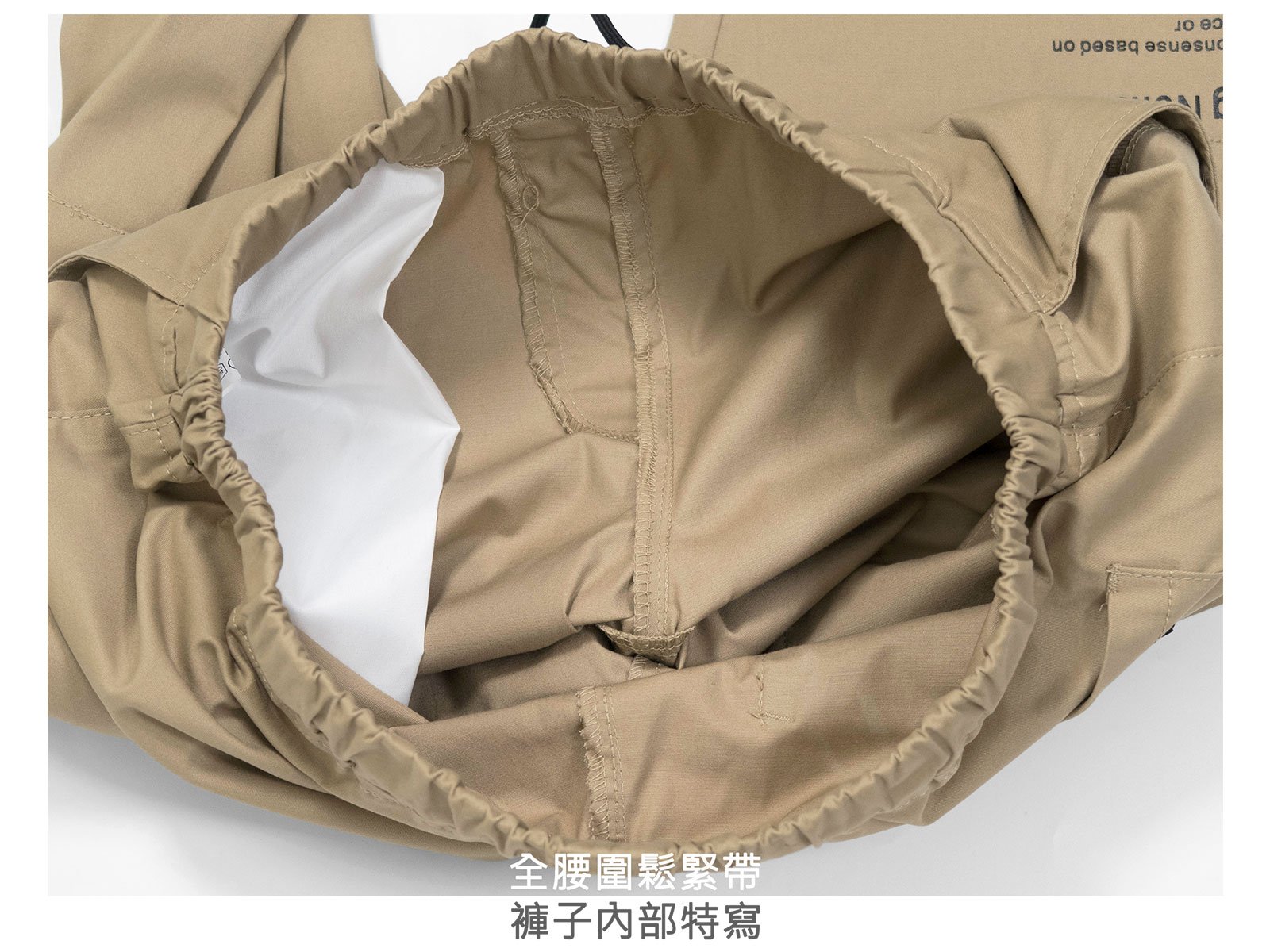 全腰圍鬆緊帶,前拉繩設計可自行調整腰圍大小。