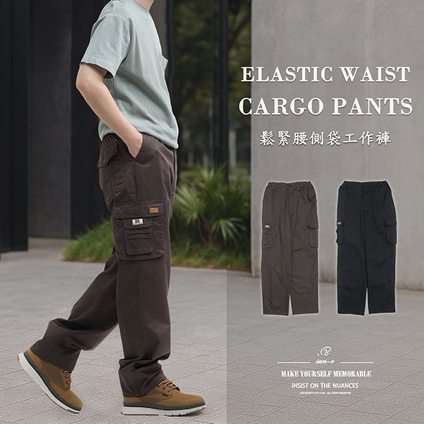 sun-e鬆緊腰工作褲、側袋褲、休閒褲、工裝褲、多袋褲、加大尺碼長褲、直筒褲、多口袋工作長褲、側貼袋休閒長褲、黑色長褲、口袋褲、Elastic Waist Cargo Pants、Side Patch Pocket Pants、Casual Pants、Work Pants、Multi-Pocket Pants、Big And Tall Pants、Plus Size Pants、Straight-Leg Trousers (323-A677-01)黑色、(323-A677-02)咖啡色 L XL 2L 3L (腰圍:28~44英吋 / 71~112公分) 男 [實體店面保障]