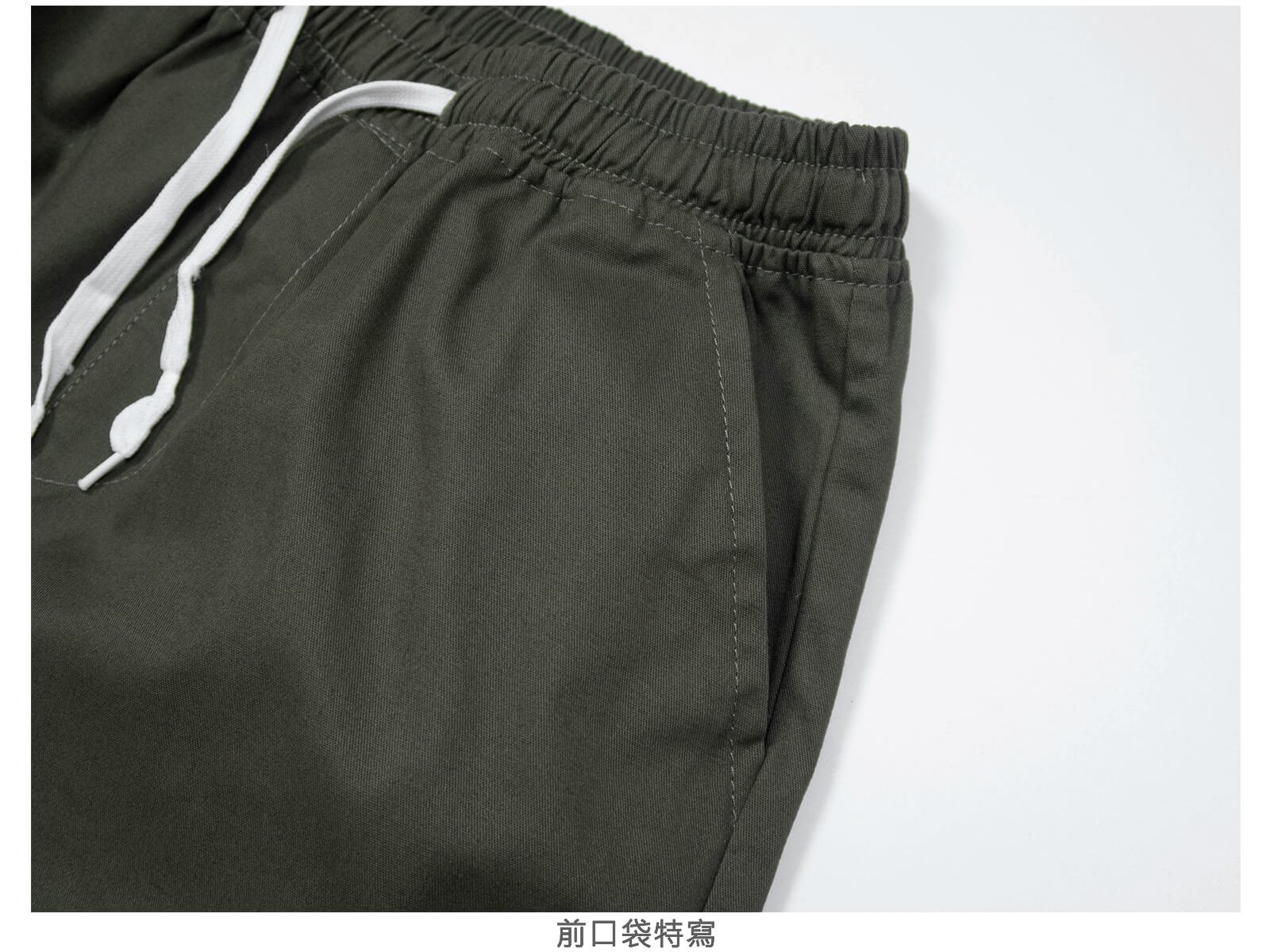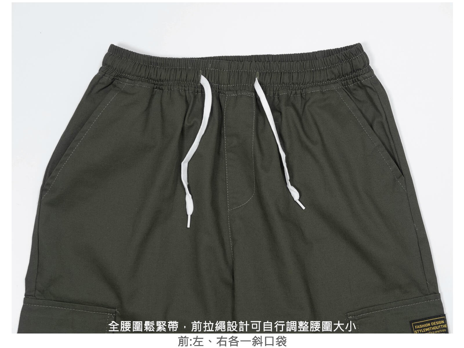 全腰圍鬆緊帶,前拉繩設計可自行調整腰圍大小。