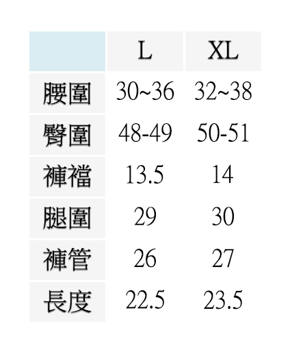 (模特兒身高180體重65公斤,腰圍32英吋,展示尺寸:XL)