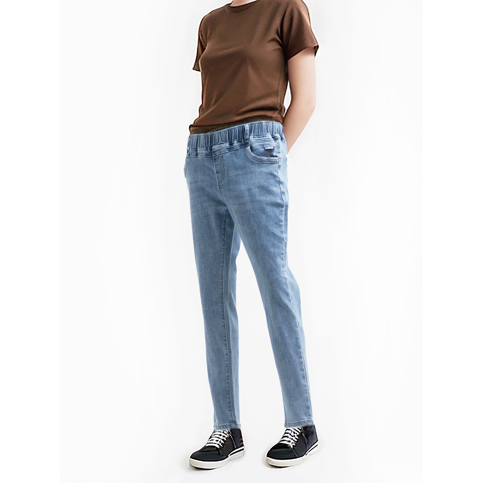 ![鬆緊腰牛仔褲 中腰彈性牛仔褲 顯瘦牛仔長褲 全腰圍鬆緊帶長褲 布料剪接設計後口袋 Elastic Waist Jeans Mid-Rise Stretch Denim Pants Relaxed Fit Denim Jeans Full Elastic Waistband Trousers Patchwork pocket (010-5608-32)淺牛仔 M L XL 2L 3L (腰圍:28~39英吋 / 71~99公分) 女 [實體店面保障] sun-e:圖片 8](https://sune1984.com/wp-content/uploads/2026/03/010-5608-32_P7.jpg)