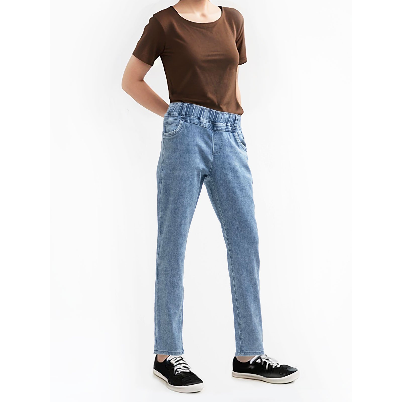 ![鬆緊腰牛仔褲 中腰彈性牛仔褲 顯瘦牛仔長褲 全腰圍鬆緊帶長褲 布料剪接設計後口袋 Elastic Waist Jeans Mid-Rise Stretch Denim Pants Relaxed Fit Denim Jeans Full Elastic Waistband Trousers Patchwork pocket (010-5608-32)淺牛仔 M L XL 2L 3L (腰圍:28~39英吋 / 71~99公分) 女 [實體店面保障] sun-e:圖片 7](https://sune1984.com/wp-content/uploads/2026/03/010-5608-32_P6.jpg)