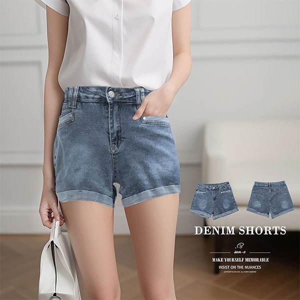 時尚韓版牛仔短褲,版型修飾身形,更加窈窕;