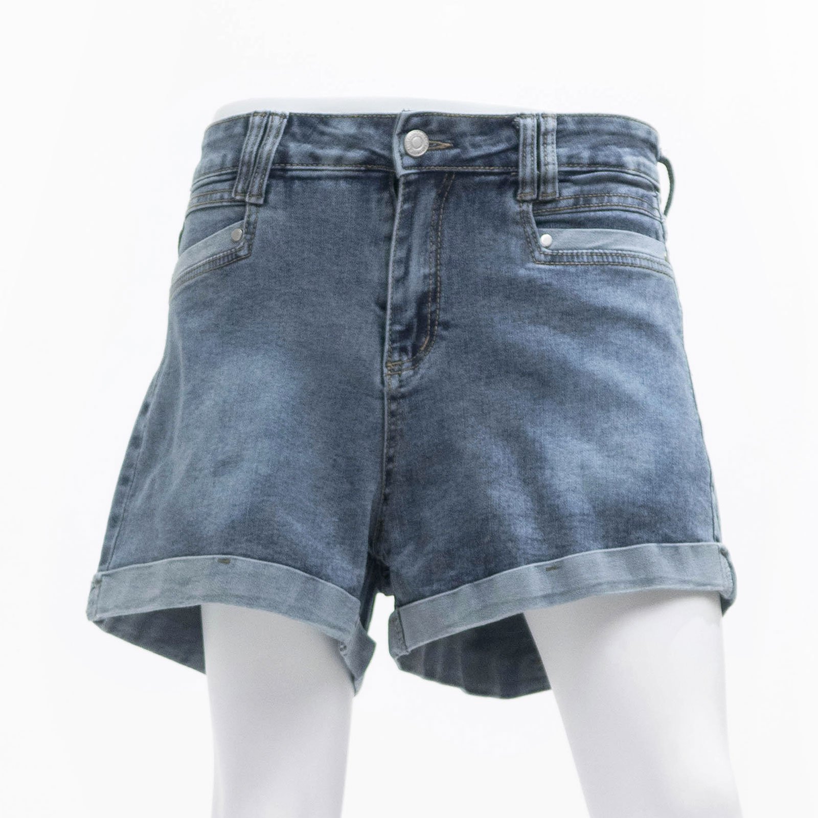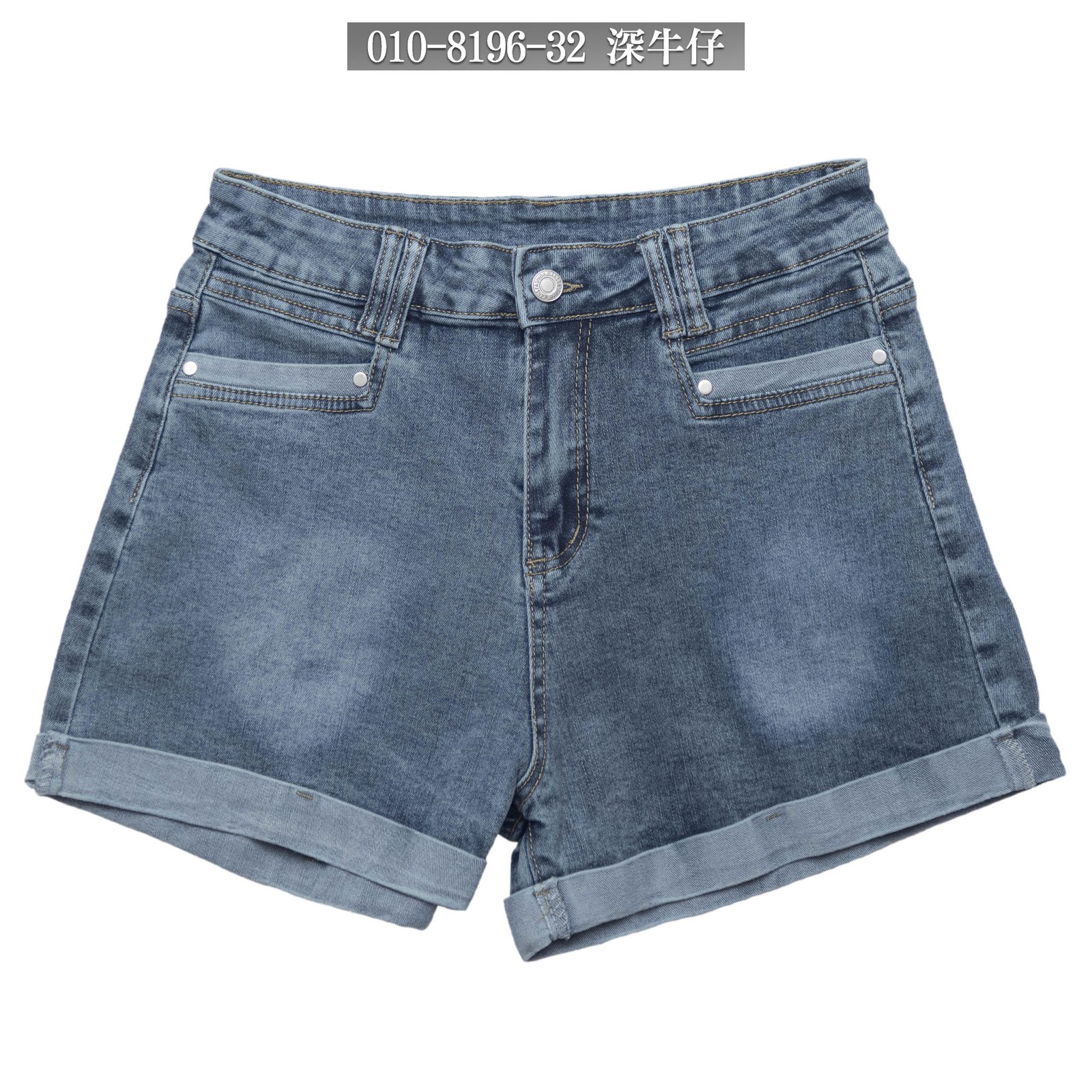 sun-e潮流韓版牛仔短褲、捲邊褲管彈性丹寧短褲、高腰牛仔褲、顯瘦涼爽素面短褲、Korean Style Stretch Jean Shorts、High-Rise Skinny Cuffed Denim Shorts、Cool And Slimming Shorts (010-8196-32)深牛仔 M L XL 2L 3L (腰圍:71~94公分 / 28~37英吋) 女 [實體店面保障]