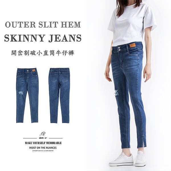 ![顯瘦小直筒牛仔褲 小開岔牛仔褲 割破牛仔長褲 九分牛仔褲 雙鈕扣彈性丹寧 刷破牛仔褲 牛仔九分褲 刷紋刷白牛仔褲 修身直筒褲 小直筒版型修飾腿型更顯修長 Slim Fit Skinny Jeans Outer Slit Hem Jeans Ripped Jeans Cropped Jeans Double Button Stretch Denim Trousers (012-7531-34)牛仔色 S M L XL (腰圍:26~33英吋 / 66~84公分) 女 [實體店面保障] sun-e:圖片 8](https://sune1984.com/wp-content/uploads/2026/03/012-7531-34_P7.jpg)