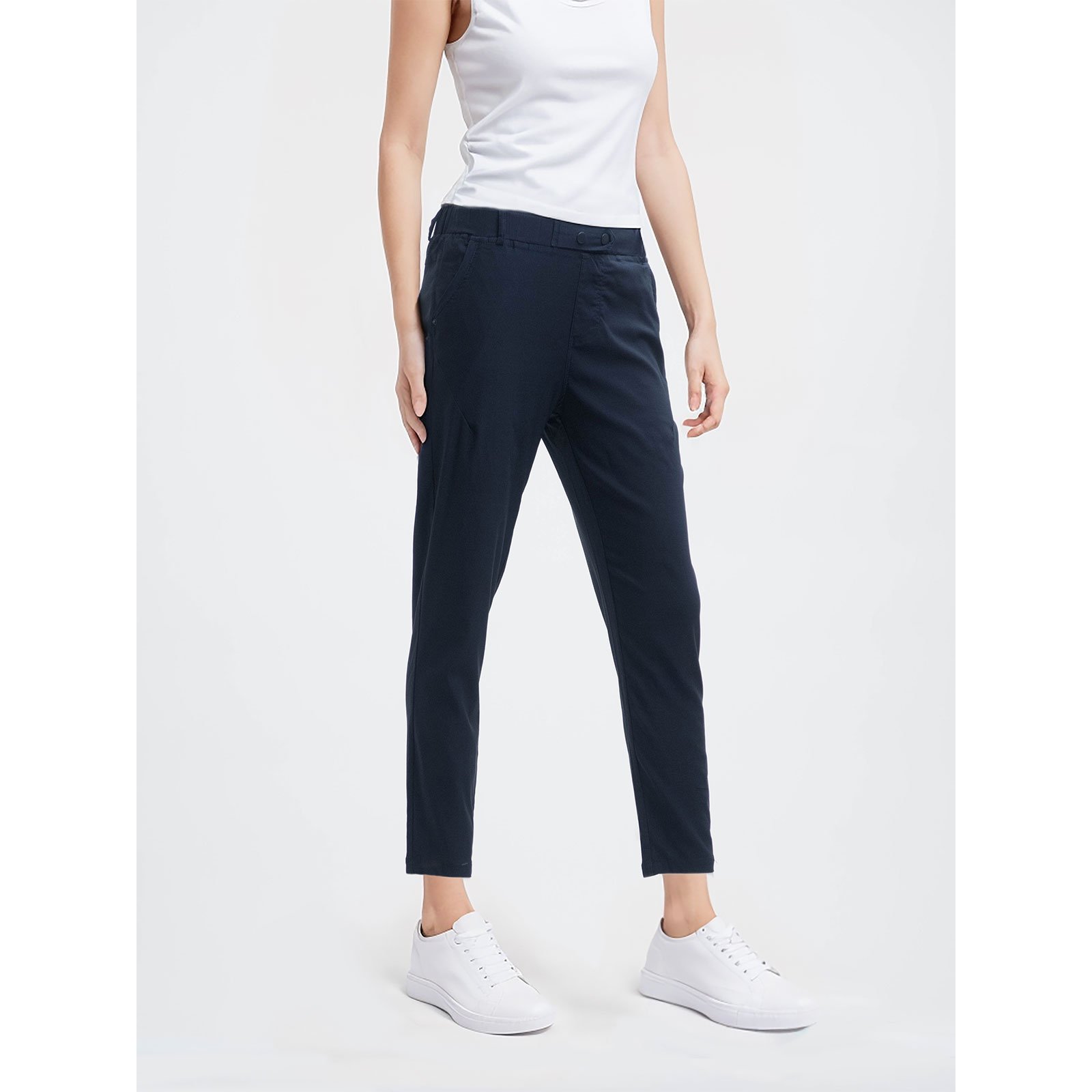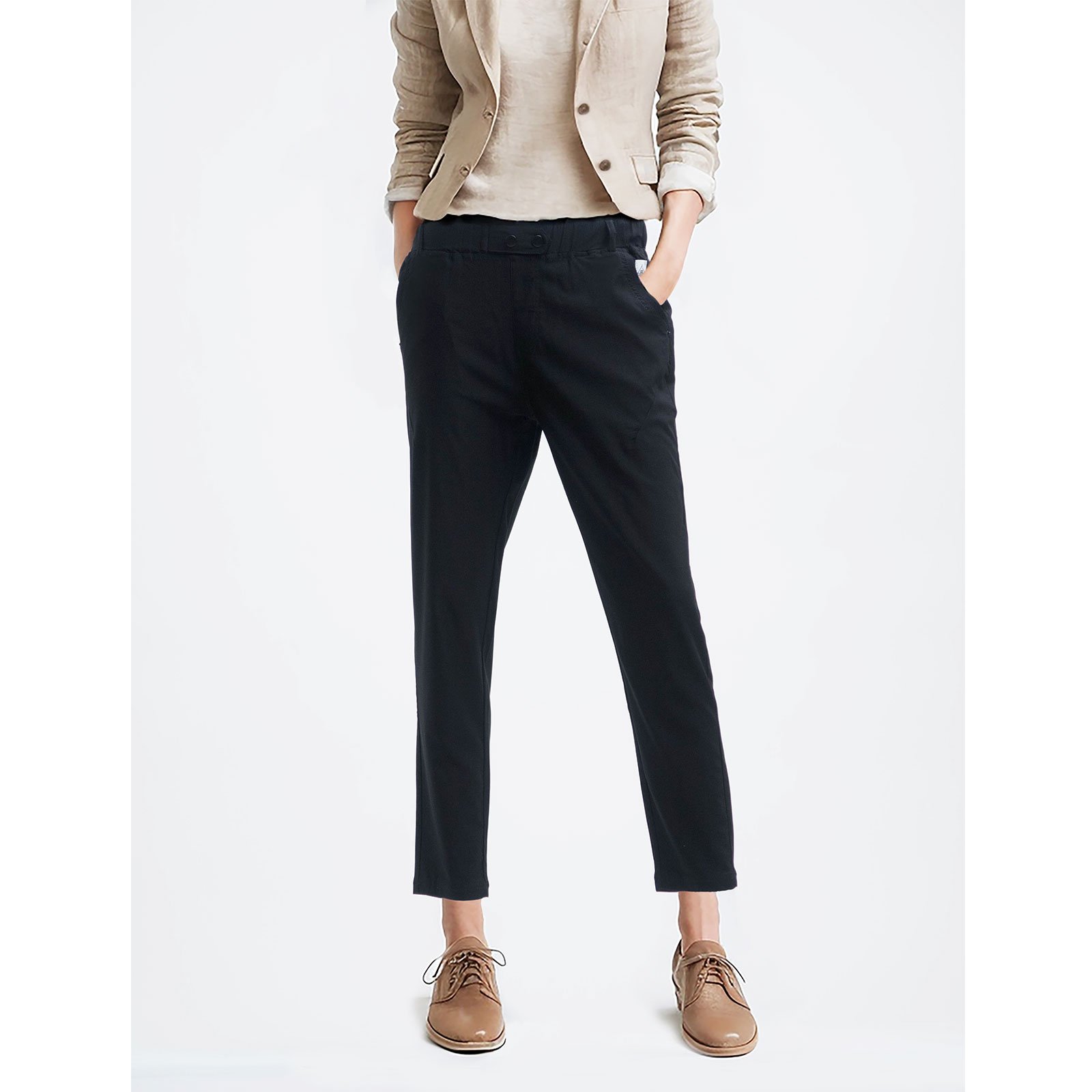 sun-e涼感布料九分褲、彈性休閒9分褲、Q-MAX標準冰感褲、修身版型休閒長褲、全腰圍鬆緊帶素面長褲、Cooling Fabric Cropped pants、Elastic fabric casual 3/4 pants、Q-MAX Standard Ice-Feel Trousers、Slim-fit Casual Pants、Elastic Waistband Plain Pants (013-0193-08)深藍色、(013-0193-21)黑色 M L XL 2L (腰圍:26~35英吋 / 66~89公分) 女 [實體店面保障]