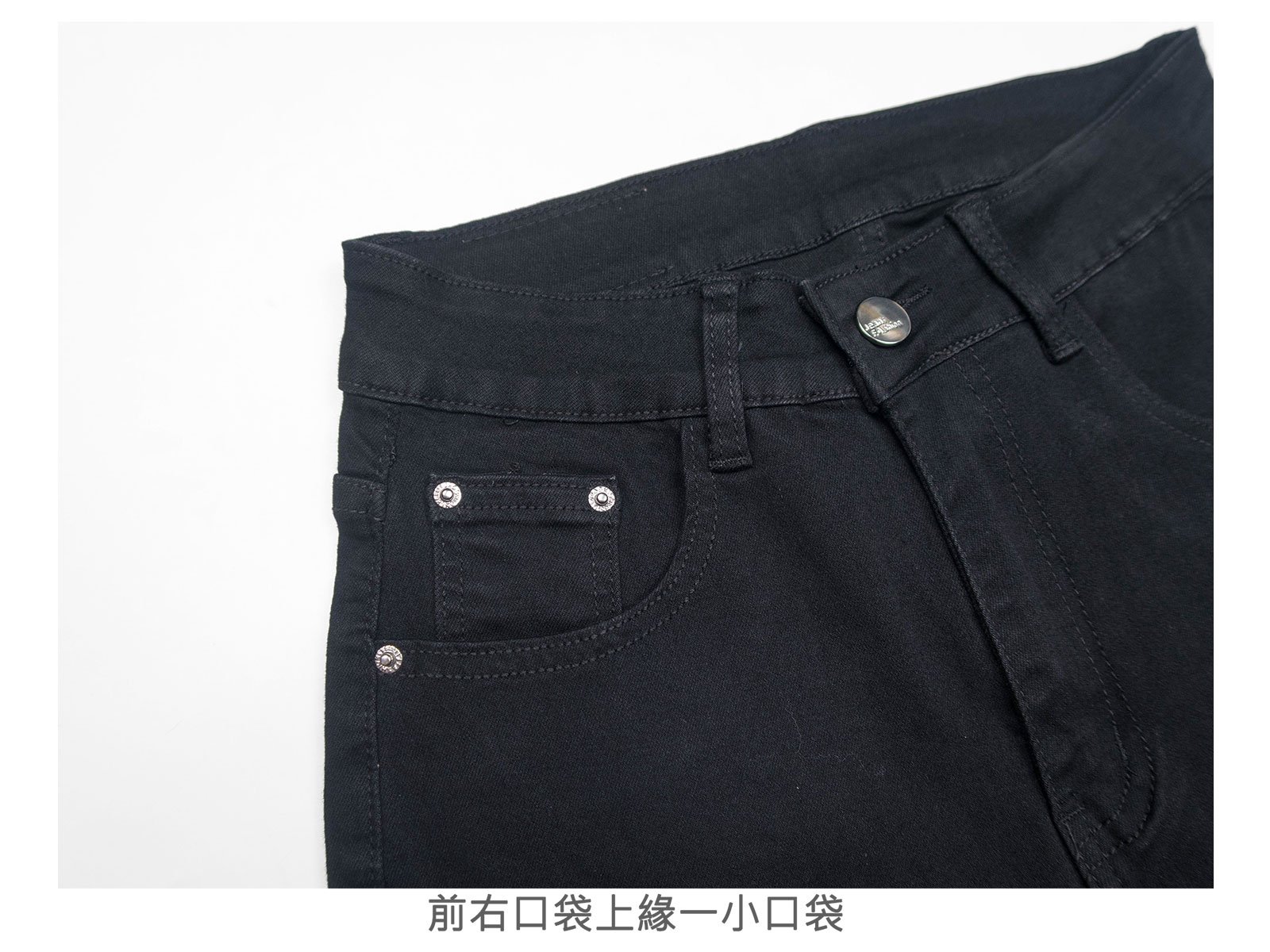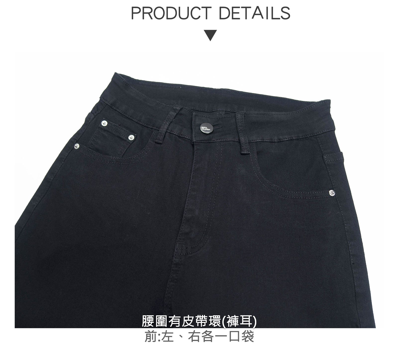 腰圍有皮帶環(褲耳),褲襠有拉鍊。