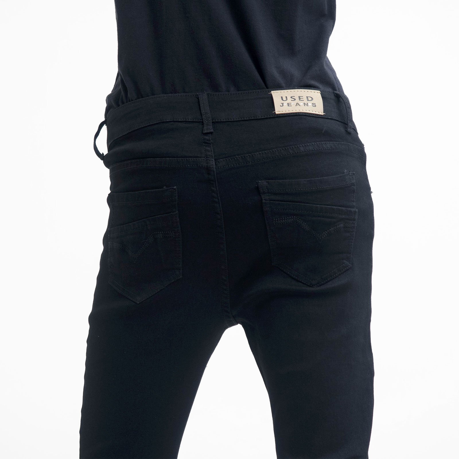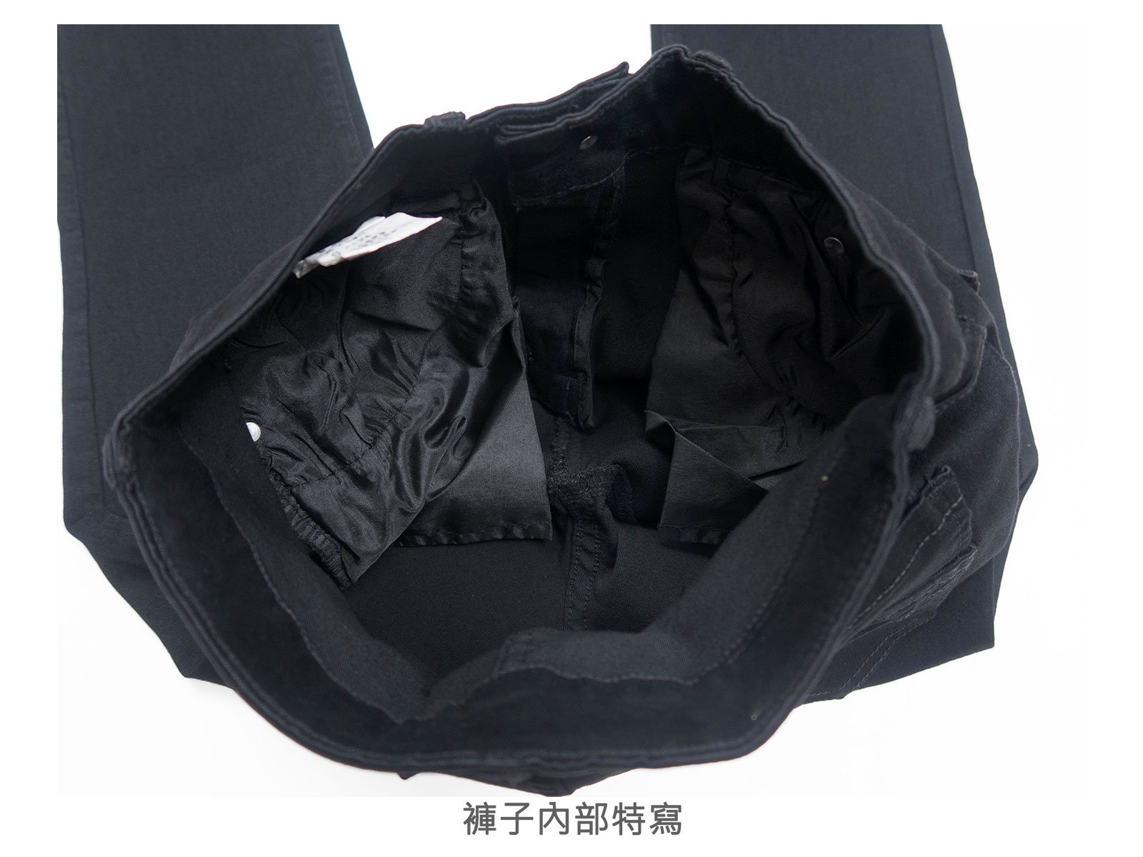 黑色素面褲身,伸縮有彈性。