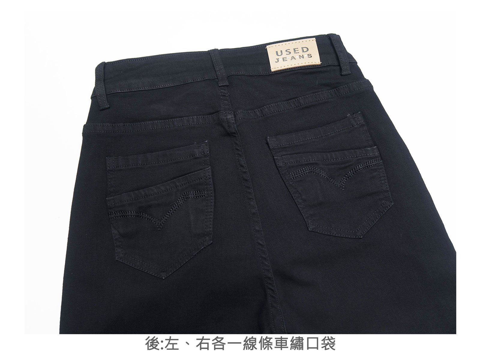 後:左、右各一線條車繡口袋。