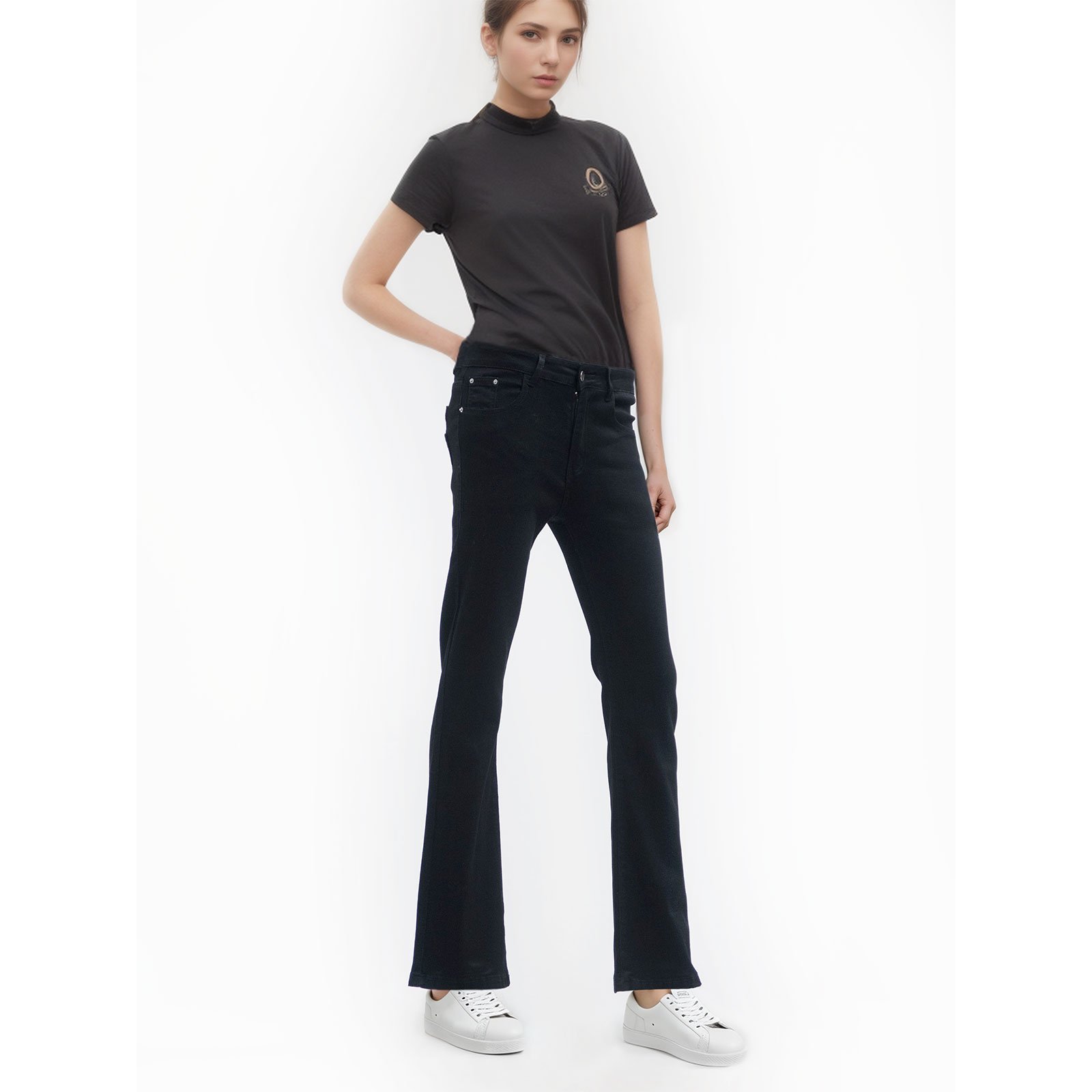 sun-e中腰牛仔喇叭褲、素面黑色喇叭褲、顯高顯瘦喇叭長褲、修身彈性丹寧喇叭褲、牛仔長褲、黑色牛仔褲、Mid-Rise Flared Jeans、Plain Black Flared Pants、Leg-Lengthening and Slimming Flared Pants、Slim-Fit Stretch Denim Flared、Denim Pants、Denim Jeans、Black Jeans (050-5831-21)黑色 M L XL 2L 3L (腰圍:66~89公分 / 26~35英吋) 女 [實體店面保障]