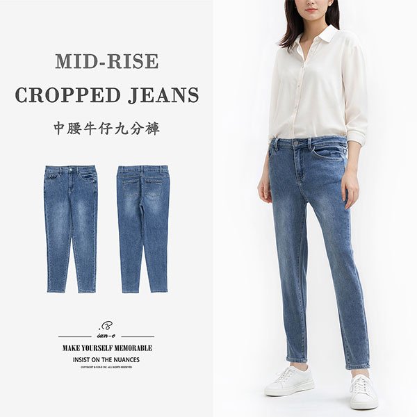 sun-e九分牛仔褲、中腰牛仔褲、顯瘦牛仔褲、直筒牛仔褲、彈性牛仔褲、牛仔九分褲、刷白牛仔褲、不貼腿牛仔褲、修身丹寧、Mid-rise Cropped Jeans、Slimming Jeans、Straight Leg Jeans、Stretch Jeans、Distressed Jeans、Relaxed Straight Leg Jeans、Denim Jeans、Denim Pants (050-7437-34)牛仔色 M L XL 2L 3L (腰圍:28~37英吋 / 71~94公分) 女 [實體店面保障]