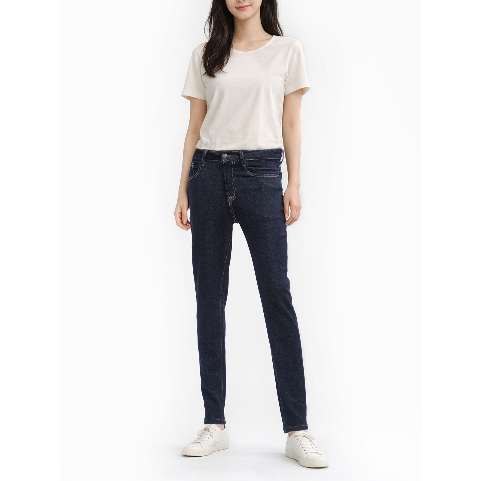 sun-e顯瘦小直筒牛仔褲、中腰牛仔長褲、彈性丹寧、修身直筒褲、小直筒版型修飾腿型更顯修長、Slim Fit Denim Jeans、Stretch Denim Pants、Mid-rise Jeans、Straight-Leg Trousers (050-A918-31)深牛仔 M L XL 2L 3L (腰圍:26~35英吋 / 66~89公分) 女 [實體店面保障]