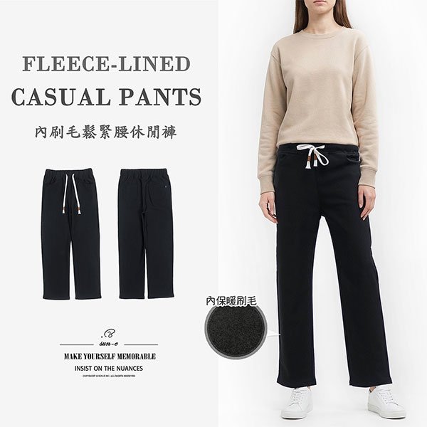 sun-e內刷毛保暖褲、抽繩內搭褲、輕盈保暖顯瘦刷毛褲、全腰圍鬆緊帶休閒褲、素面彈性長褲、黑色長褲、休閒長褲、修身直筒不顯腿型、修飾腿型不貼腿、線條俐落不緊繃、Fleece-Lined Thermal Pants、Drawstring Layering Pants、Slimming Pants、Elastic Waist Casual Pants、Plain Stretch Pants、Black Pants、Women’s Clothing (058-3011-21)黑色 S M L XL 2L (腰圍:66~102公分 / 26~40英吋) 女 [實體店面保障]
