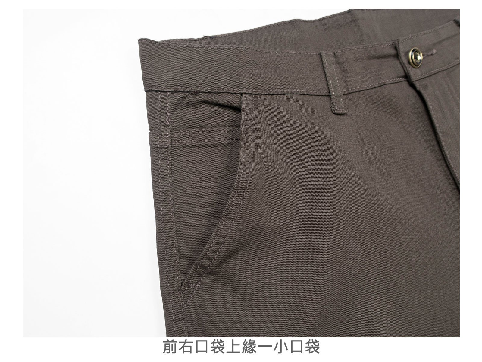 腰圍有皮帶環(褲耳)、褲檔有拉鍊。