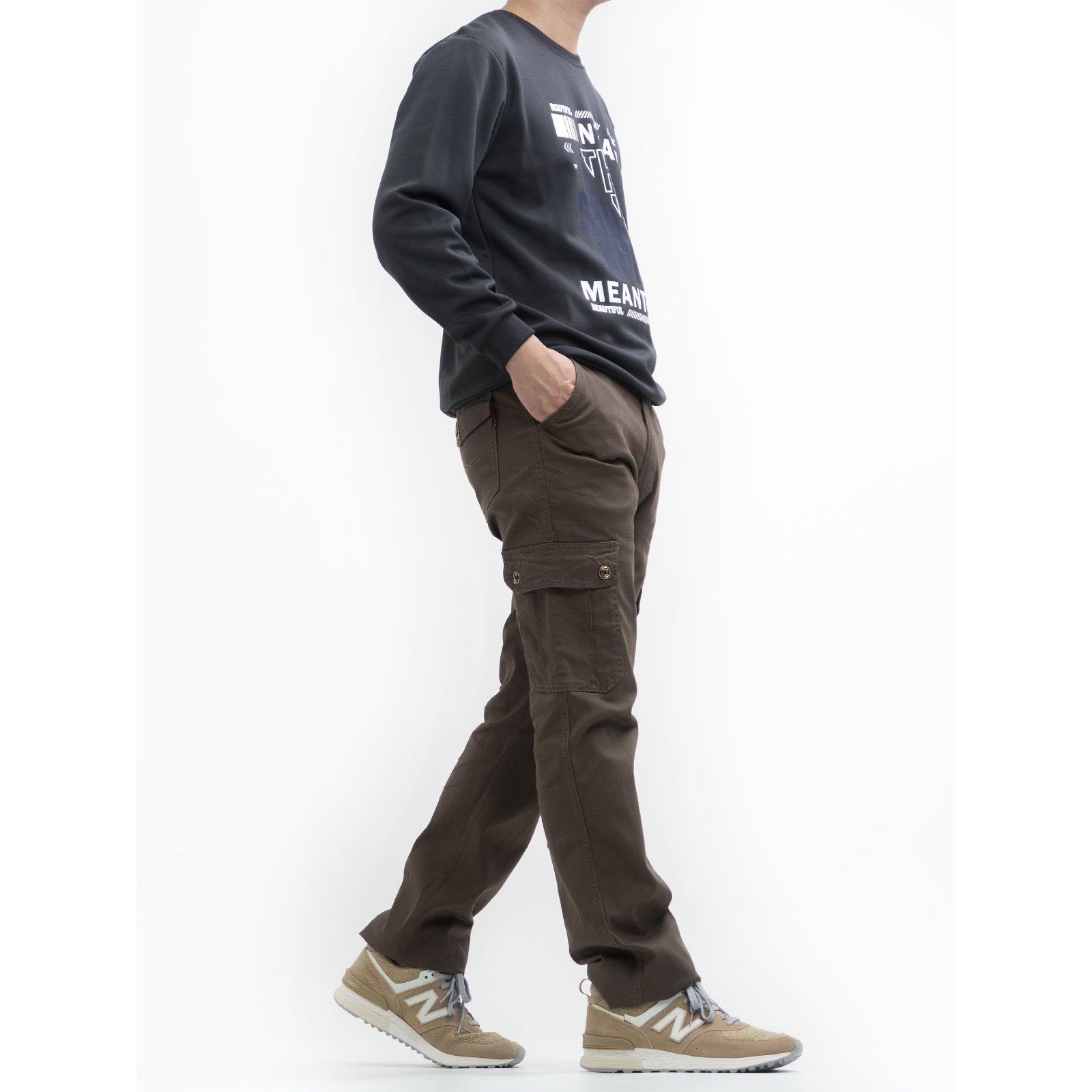 sun-e輕薄彈性修身側袋褲、多口袋休閒褲、素面工作褲、工裝褲、休閒長褲、工作長褲、側貼袋彈性長褲、直筒褲、口袋褲、Lightweight Slim-fit Cargo Pants、Stretch Pants、Plain Casual Pants、Straight-Leg Trousers (307-7268-12)咖啡色 M L XL 2L 3L 4L 5L (腰圍:28~41英吋/71~104公分) 男 [實體店面保障]