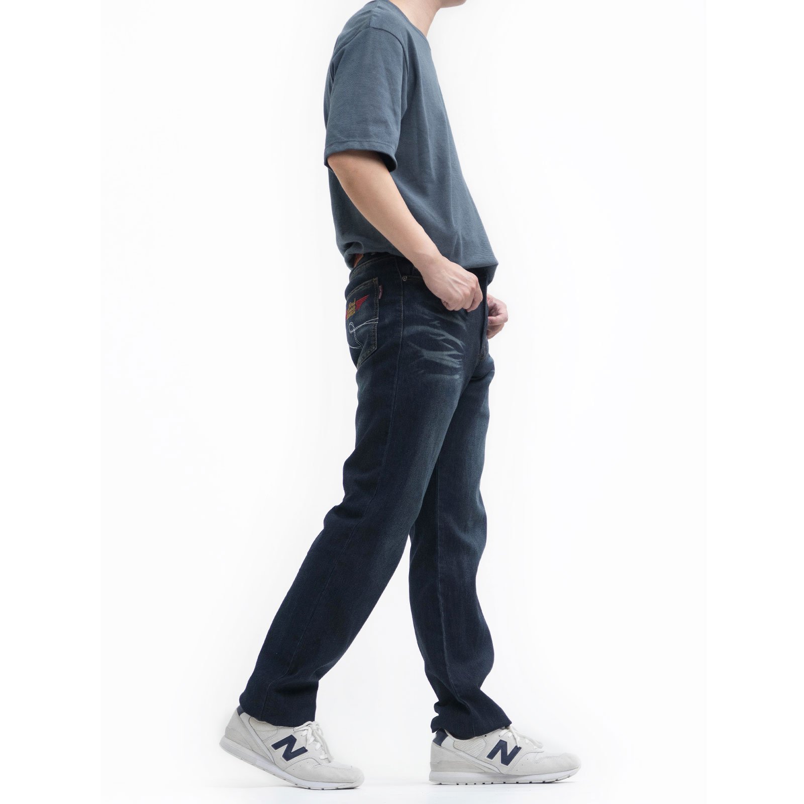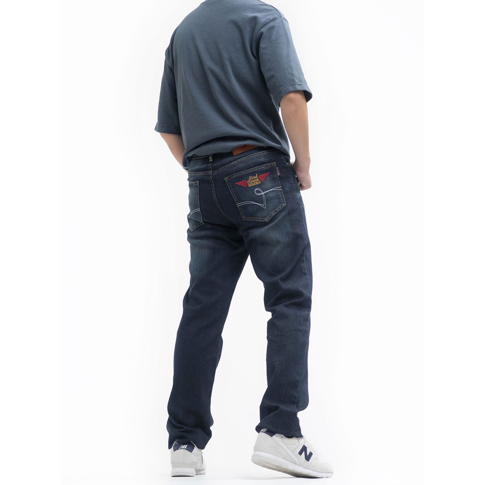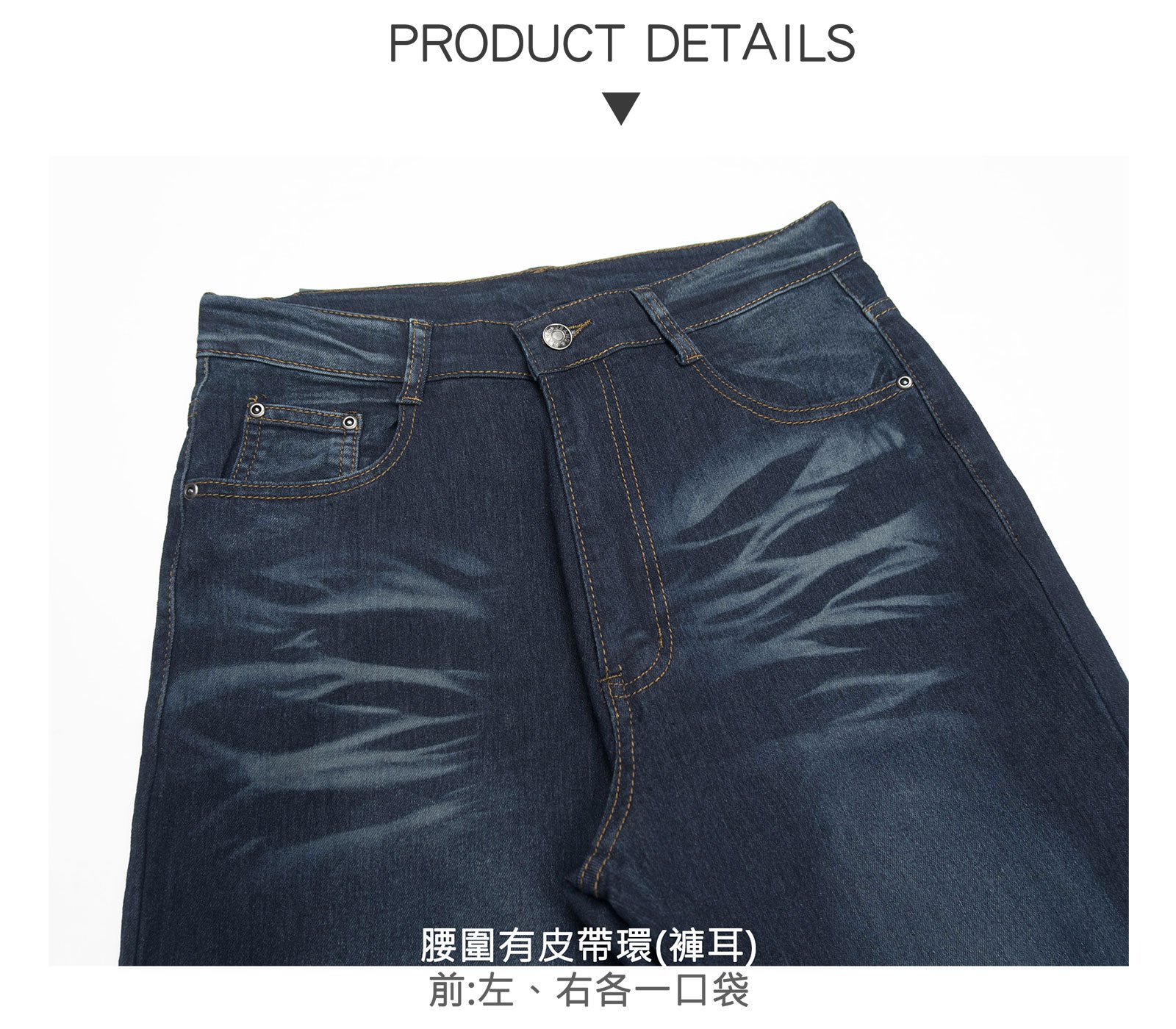 sun-e中直筒牛仔褲、彈性牛仔長褲、刷白牛仔褲、刷紋丹寧、直筒褲、車繡後口袋、Regular Fit Jeans、Stretch Denim Pants、Distressed Jeans、Straight-Leg Trousers、Embroidered Pockets (307-7477-21)深牛仔 M L XL 2L 3L 4L 5L (腰圍:28~41英吋 / 71~104公分) 男 [實體店面保障]