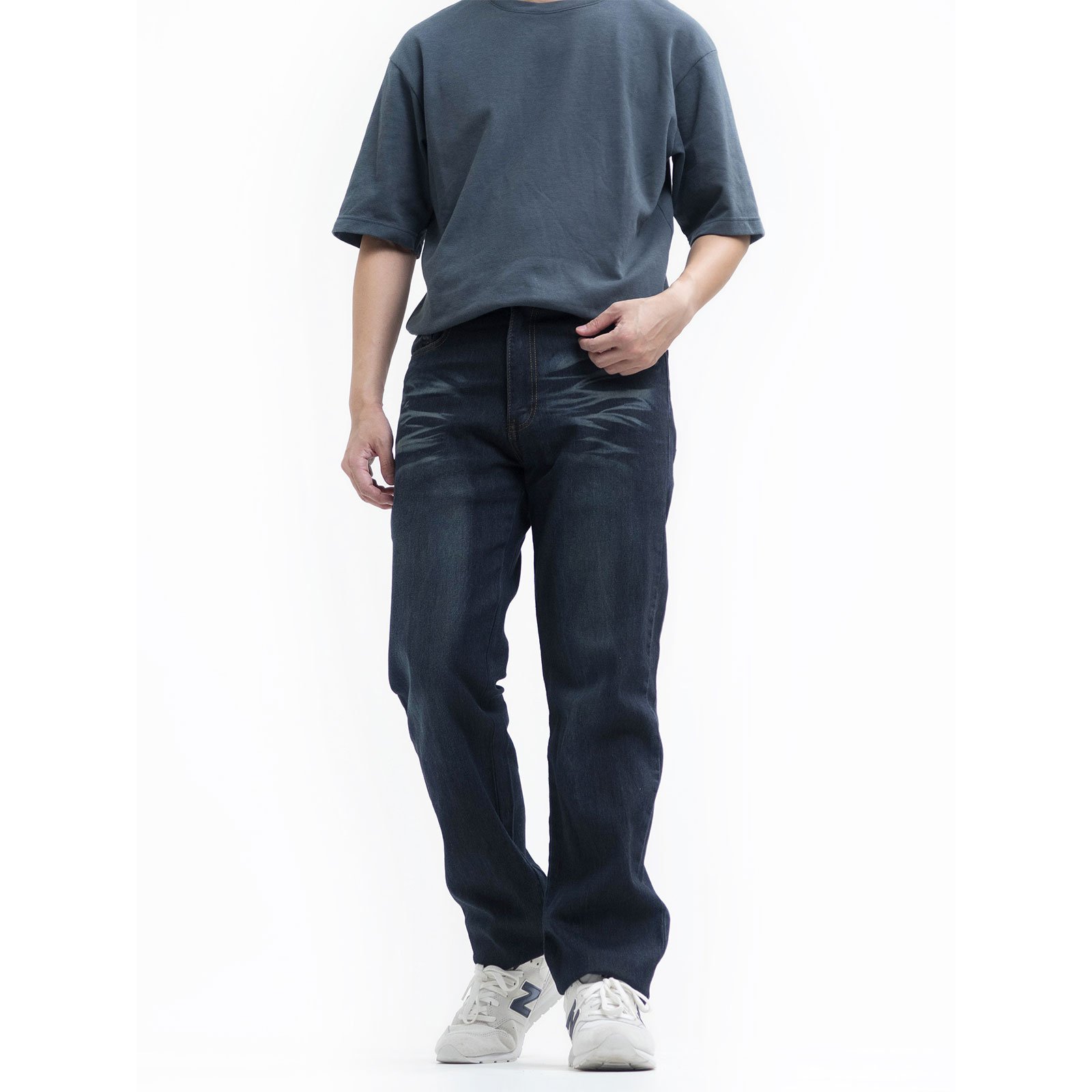 中直筒牛仔褲 彈性牛仔長褲 刷白牛仔褲 刷紋丹寧 直筒褲 車繡後口袋 Regular Fit Jeans Stretch Denim Pants Distressed Jeans Straight-Leg Trousers Embroidered Pockets (307-7477-21)深牛仔 M L XL 2L 3L 4L 5L (腰圍:28~41英吋 / 71~104公分) 男 [實體店面保障] sun-e