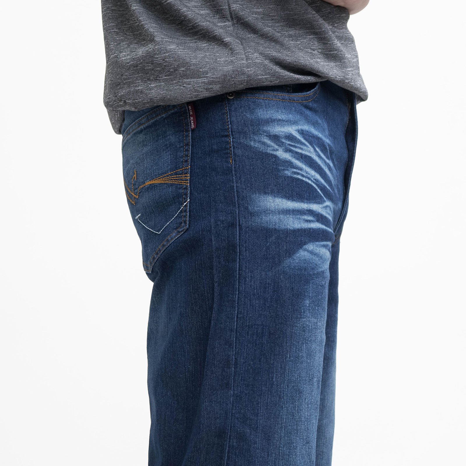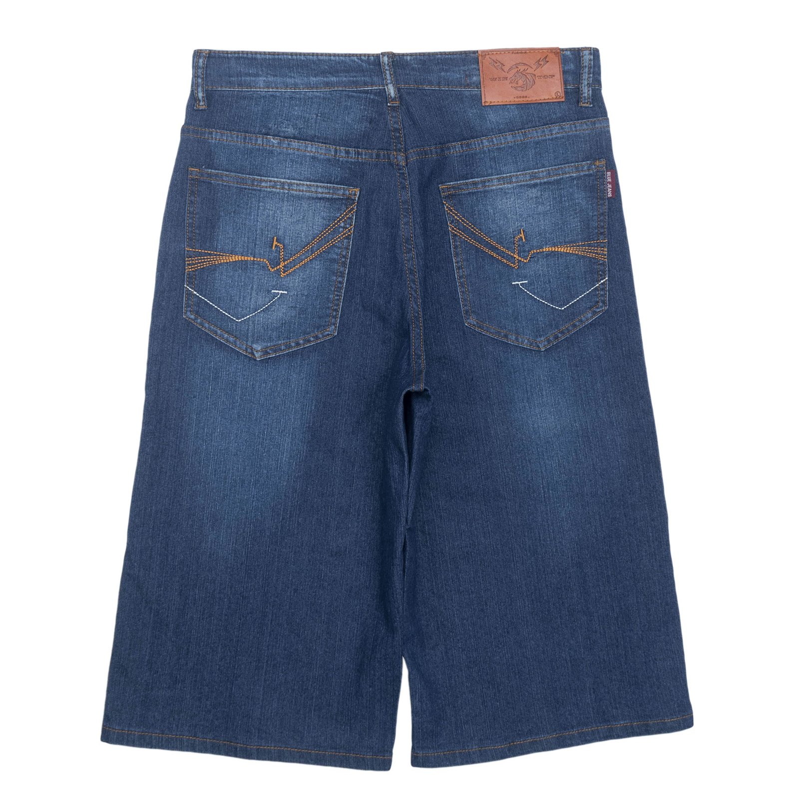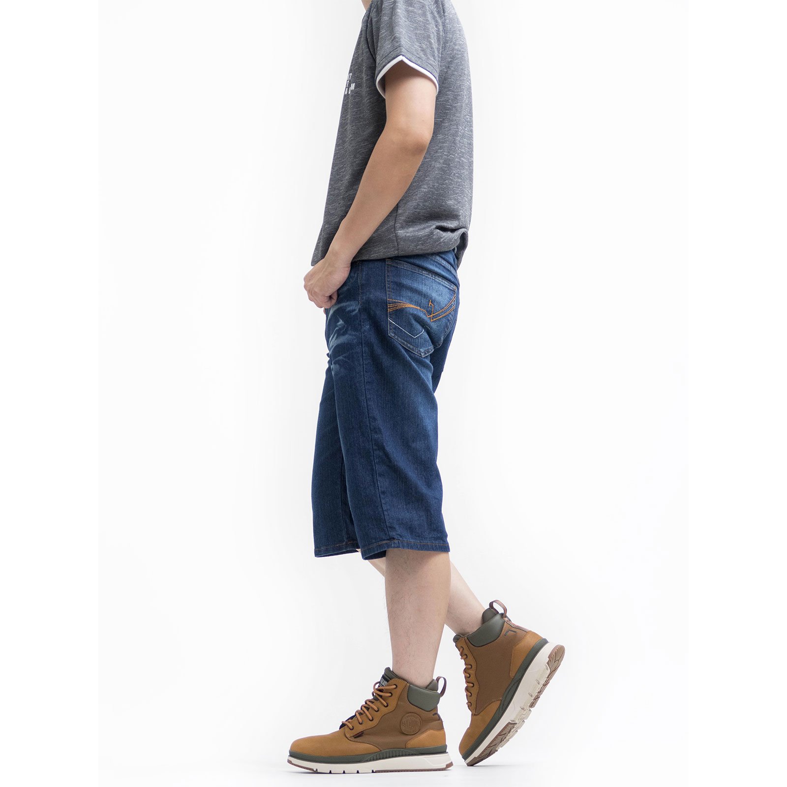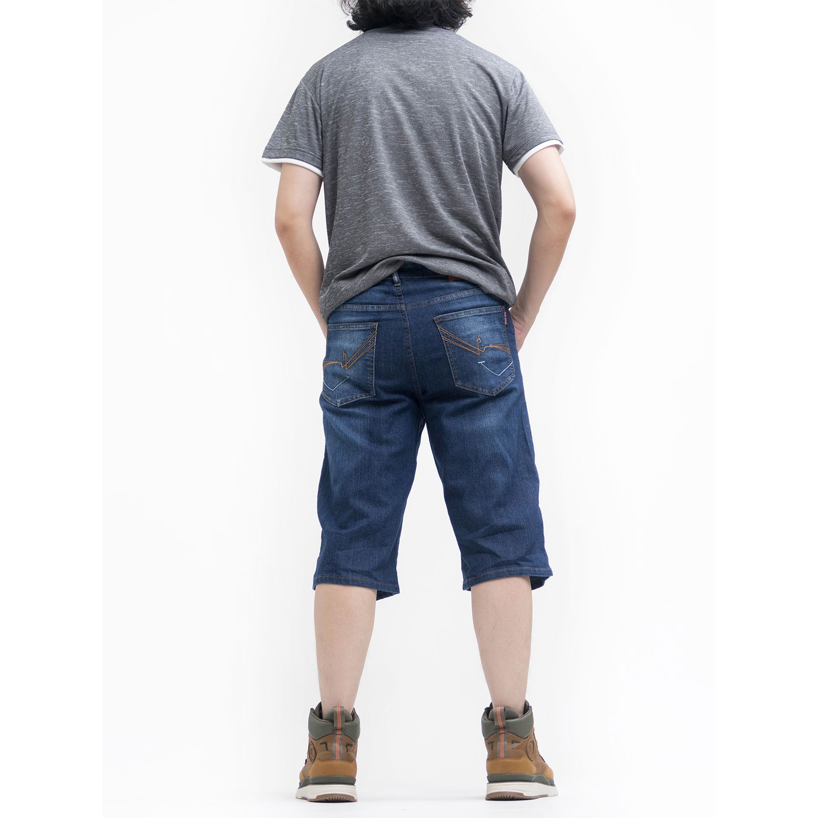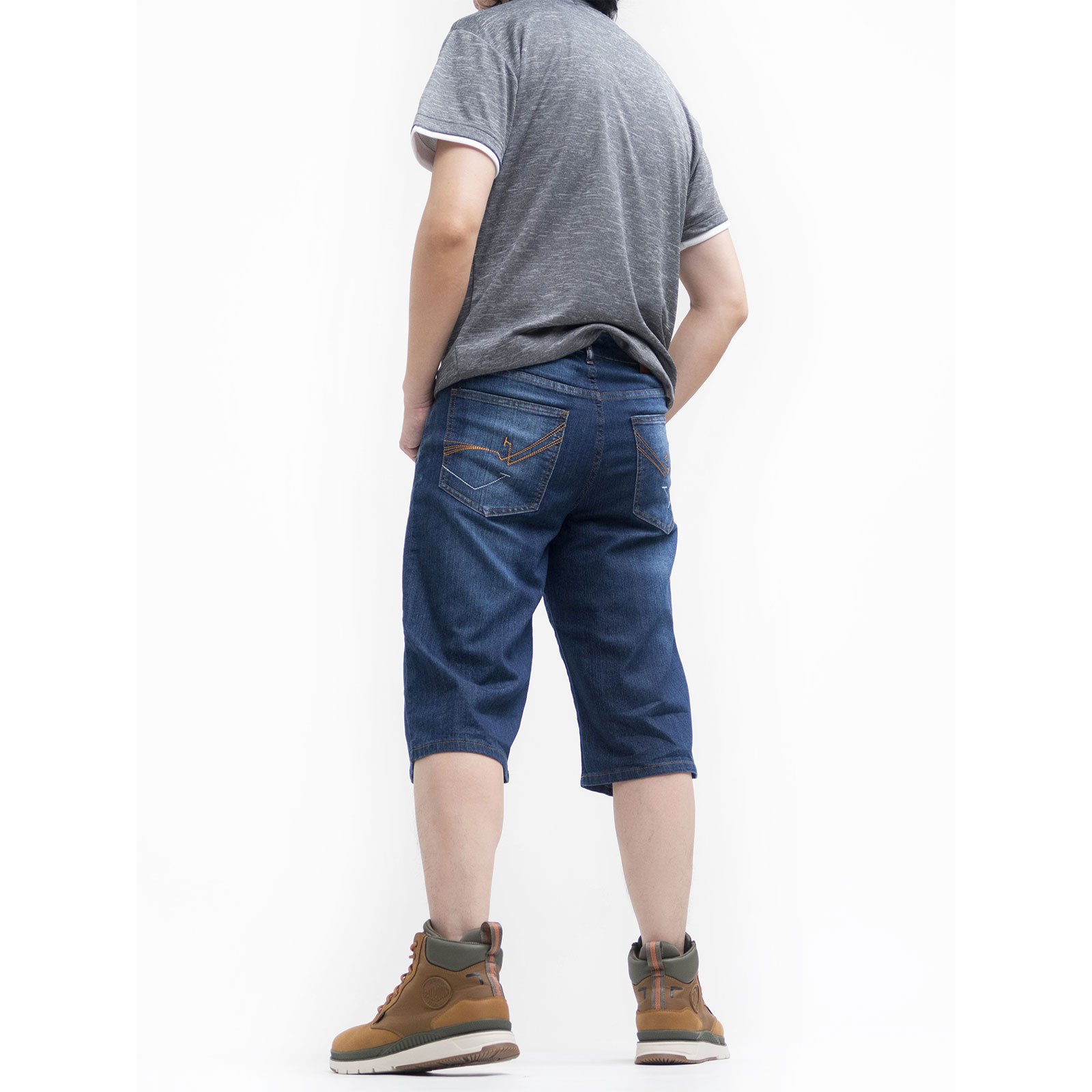 sun-e七分牛仔褲、彈性牛仔短褲、牛仔七分褲、刷白牛仔褲、刷紋丹寧短褲、車繡後口袋、Cropped Jeans、Stretch Jean Shorts、Faded Streaks Faded Thighs Denim Shorts、Short Pants、Embroidered Pockets (307-7598-08)牛仔色 L XL 2L 3L 4L 5L (腰圍:30~41英吋 / 76~104公分) 男 [實體店面保障]