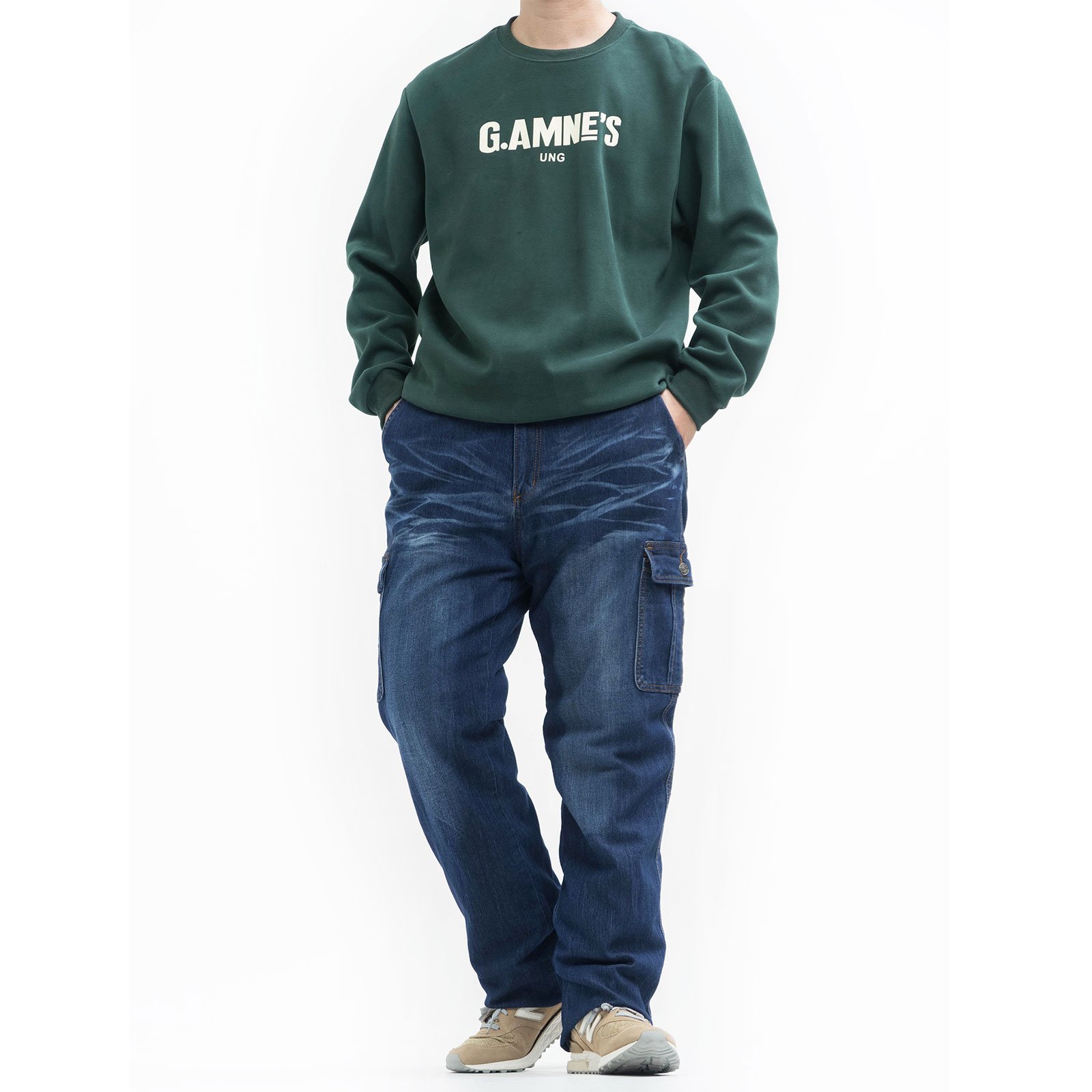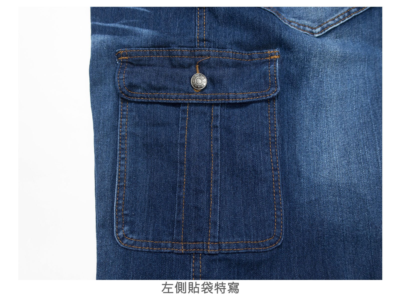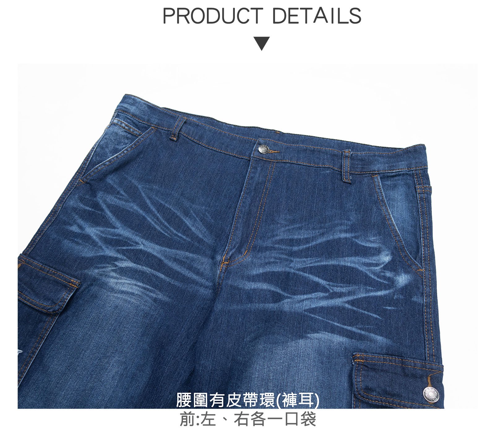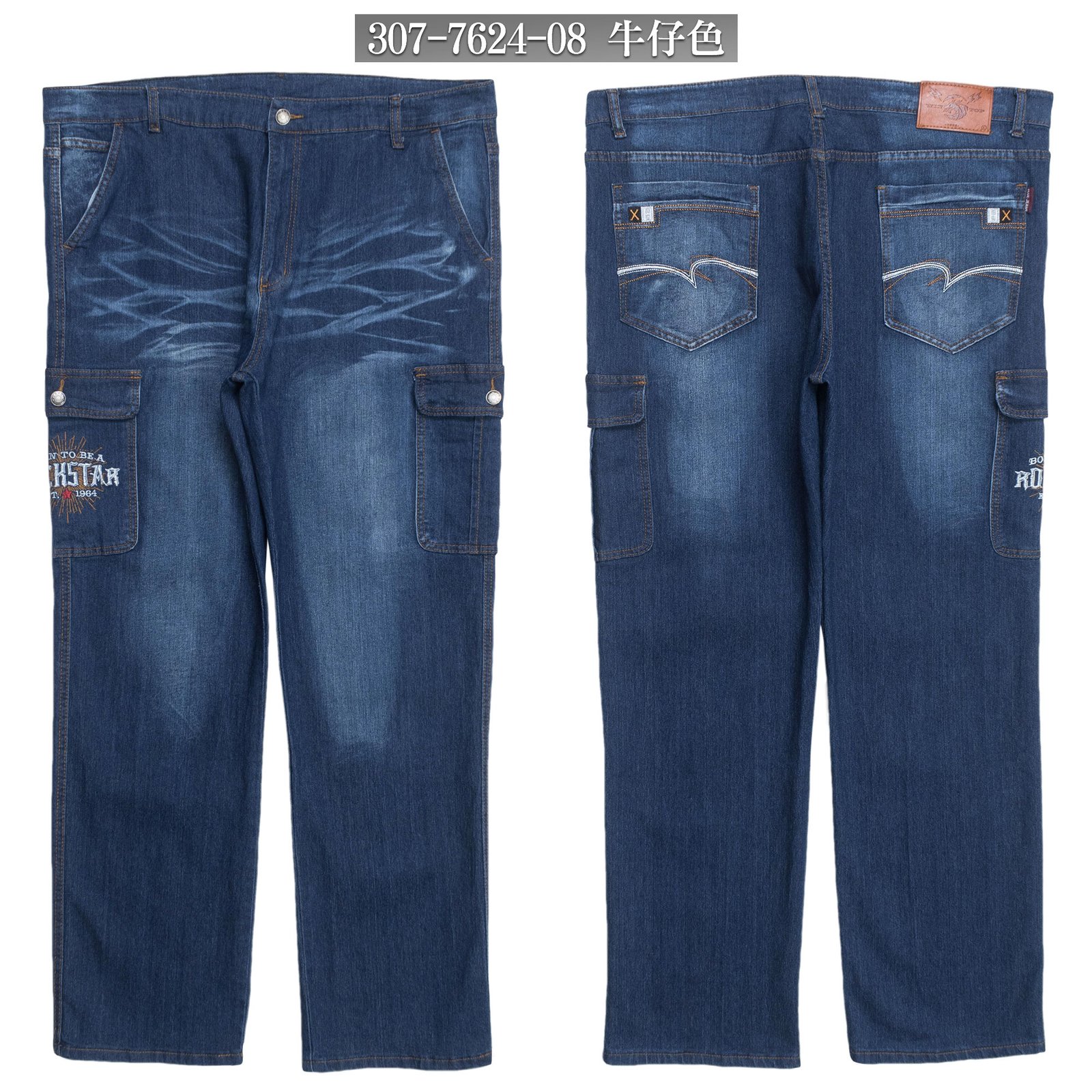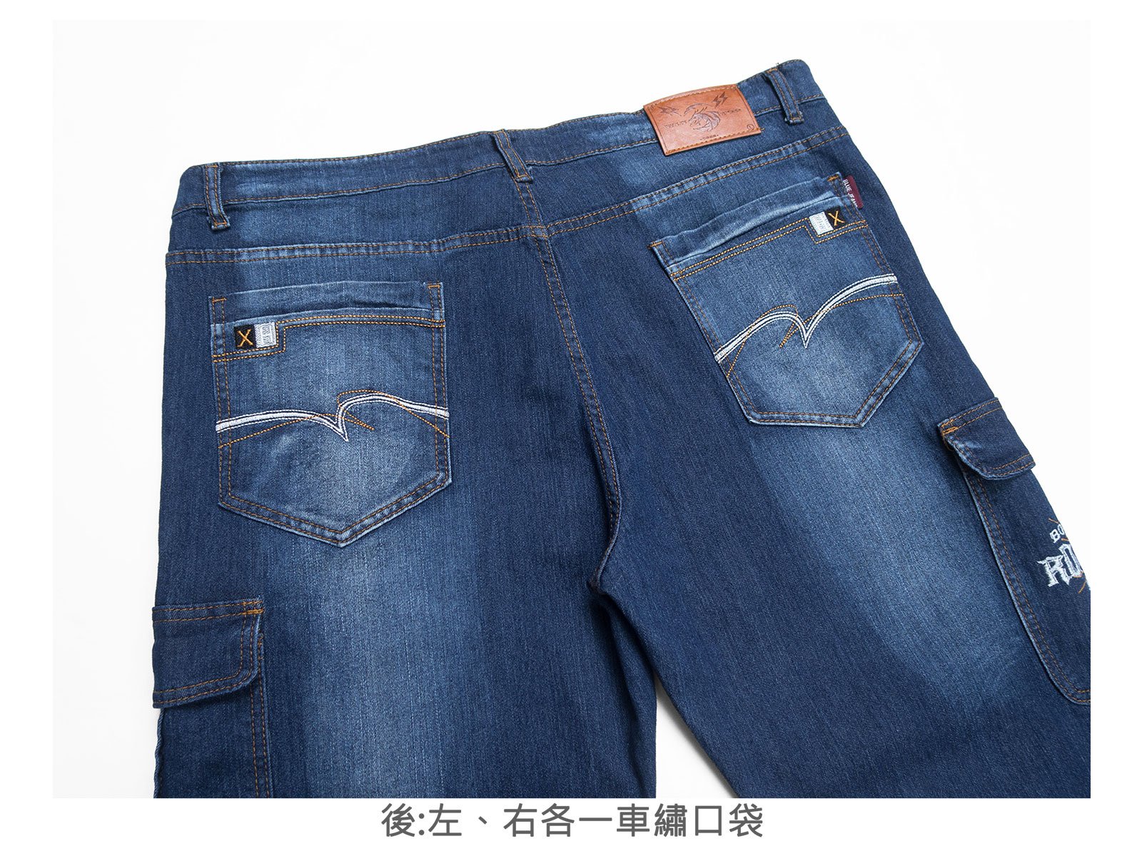 sun-e加大尺碼牛仔褲、大尺碼工作褲、彈性牛仔側袋褲、工裝褲、丹寧工作褲、大尺碼長褲、大尺碼男裝、多口袋工作長褲、刷紋刷白牛仔長褲、直筒褲、口袋褲、英文字車繡側貼袋、車繡後口袋、Big and Tall Jeans、Cargo Jeans、Stretch Cargo Pants、Denim Cargo Pants、Straight-Leg Trousers、Embroidered Pockets (307-7624-08)牛仔色 腰圍:42~50英吋(107~127公分) 男 [實體店面保障]