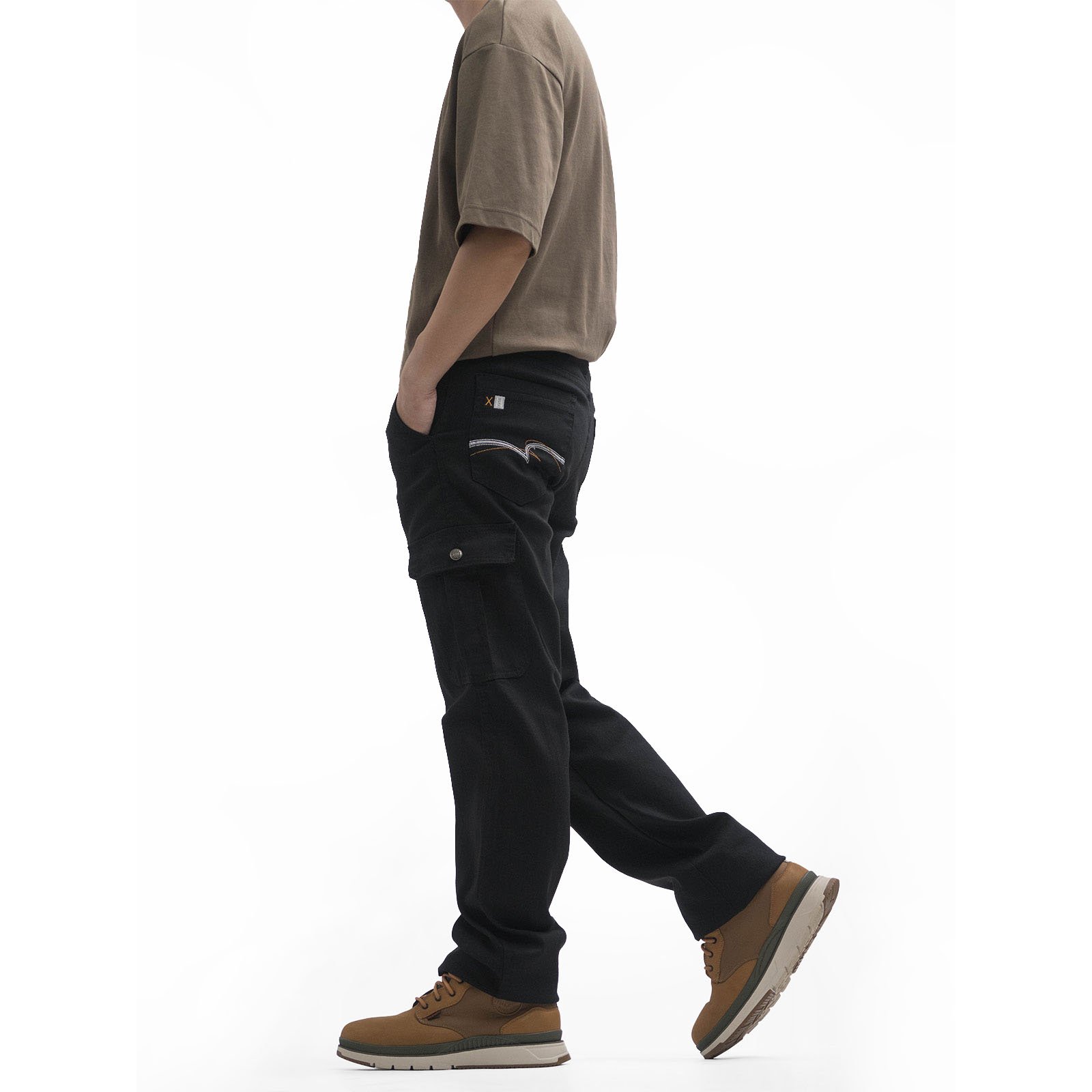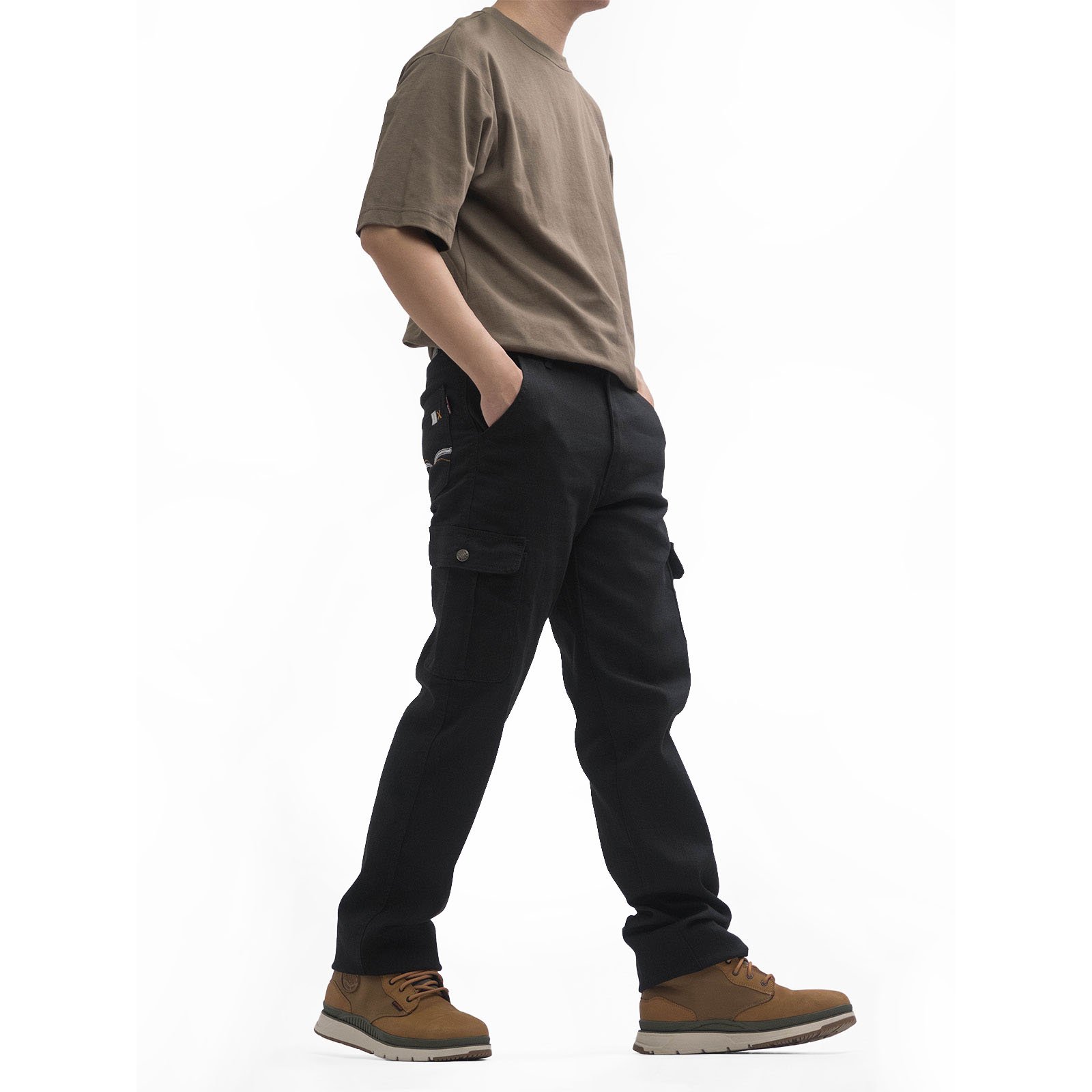 大彈力中直筒工作褲,側貼袋與多口袋設計,