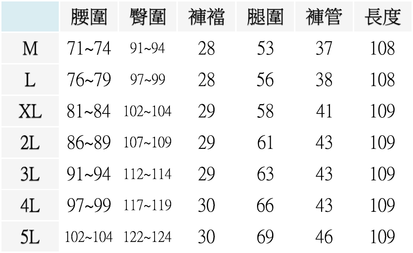 | 尺寸 | M ( 腰圍28-29英吋 / 71~74公分 ), L ( 腰圍30-31英吋 / 76~79公分 ), XL ( 腰圍32-33英吋 / 81~84公分 ), 2L ( 腰圍34-35英吋 / 86~89公分 ), 3L ( 腰圍36-37英吋 / 91~94公分 ), 4L ( 腰圍38-39英吋 / 97~99公分 ), 5L ( 腰圍40-41英吋 / 102~104公分 ) |