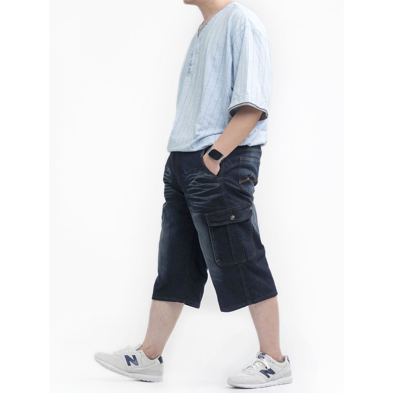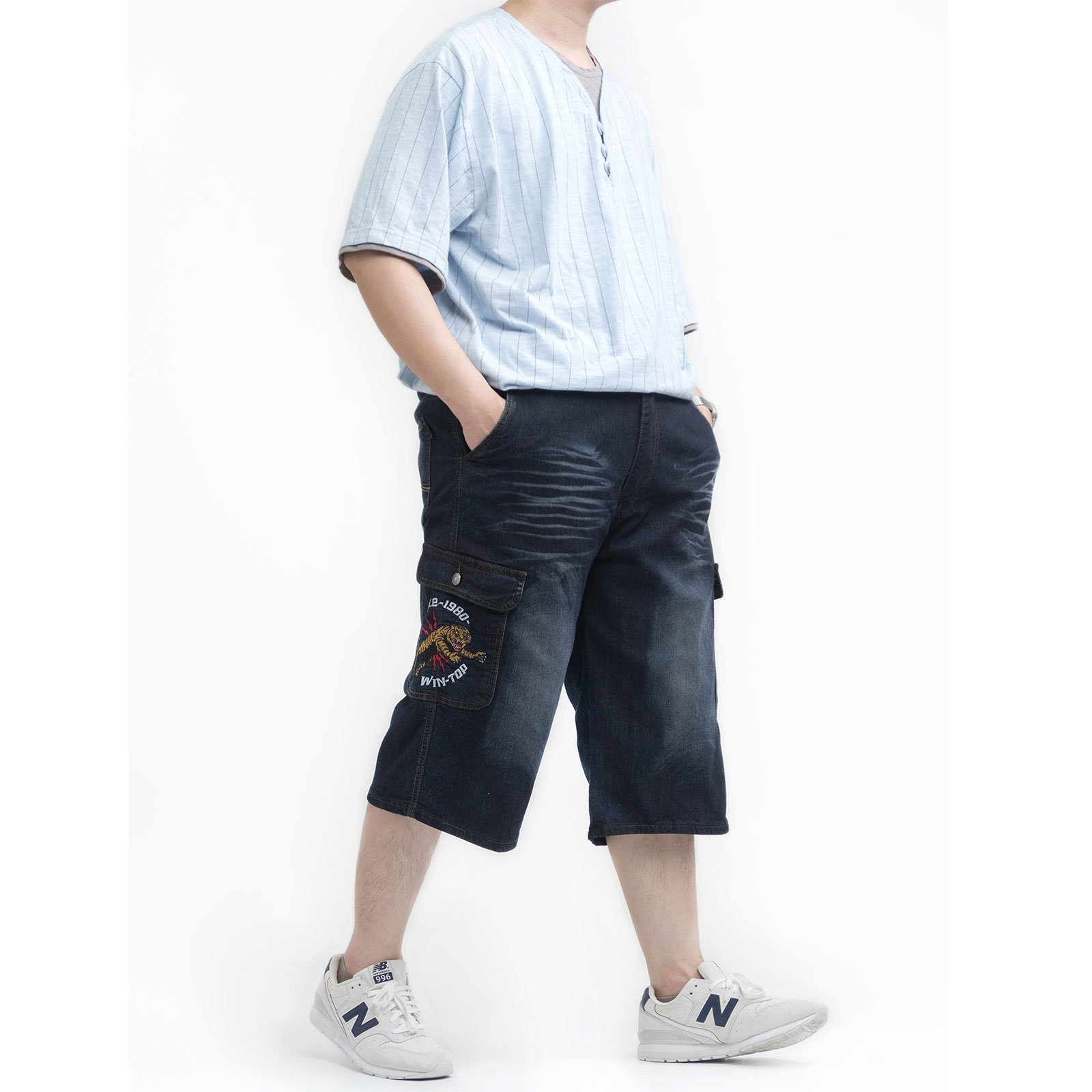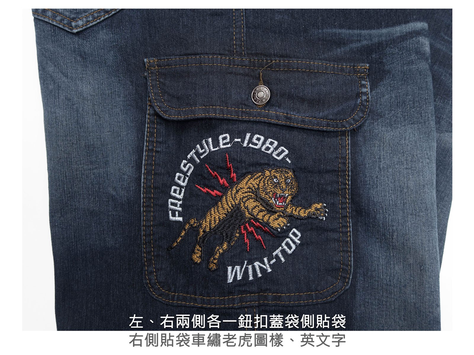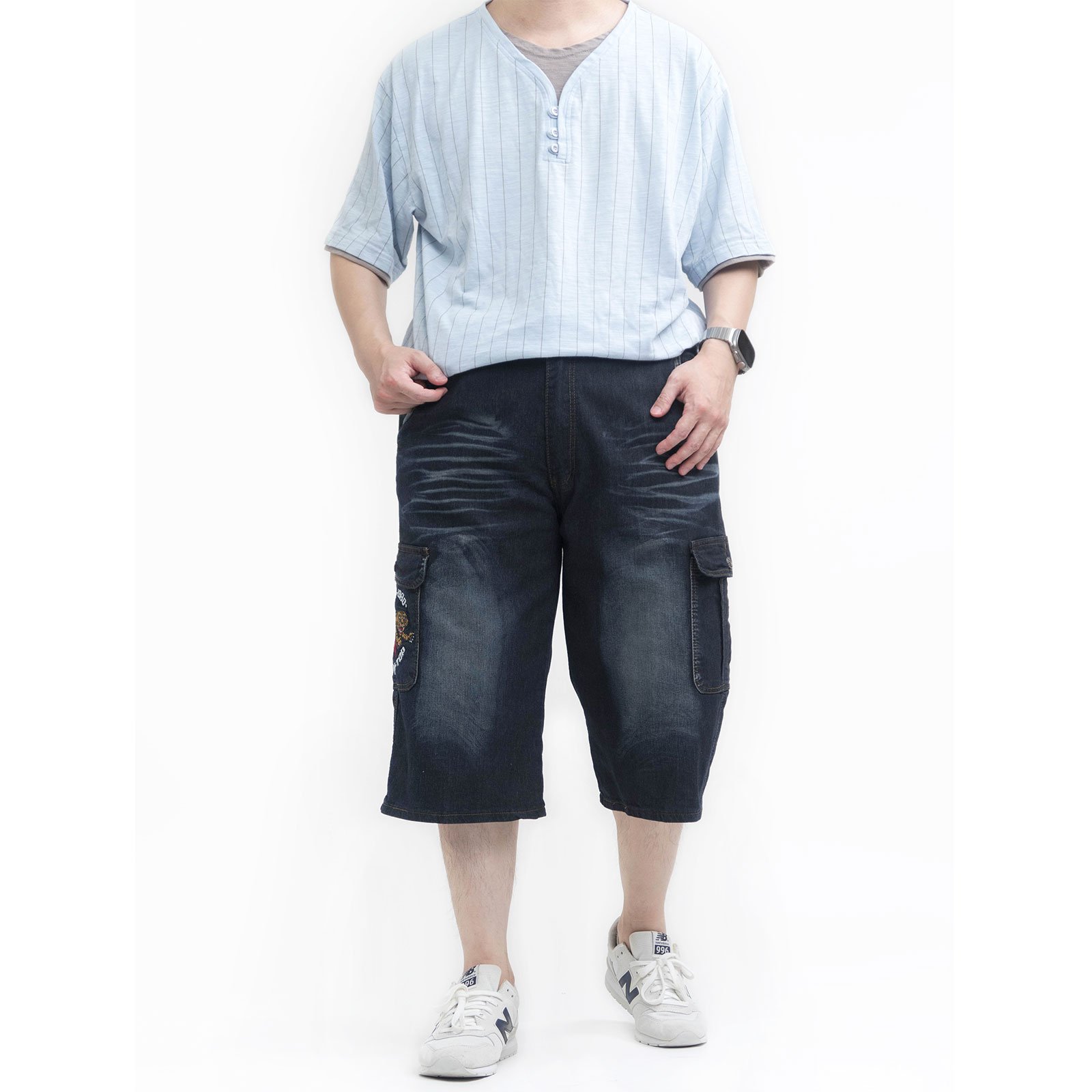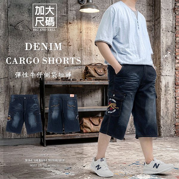 sun-e加大尺碼牛仔短褲、老虎車繡口袋牛仔側袋褲、丹寧工作短褲、工裝褲、刷紋彈性牛仔褲、大尺碼短褲、牛仔工作褲、大尺碼男裝、多口袋牛仔褲、刷白牛仔褲、口袋褲、側貼袋短褲、Big And Tall Jeans Shorts、Tiger embroidered Pocket Cargo Shorts、Denim Cargo Pants、Stretch Jeans、Embroidered Pockets (307-7633-21)深牛仔 腰圍:42~50英吋 (107~127公分) 男 [實體店面保障]