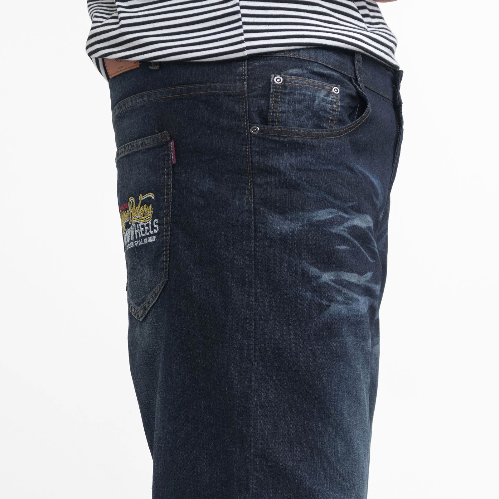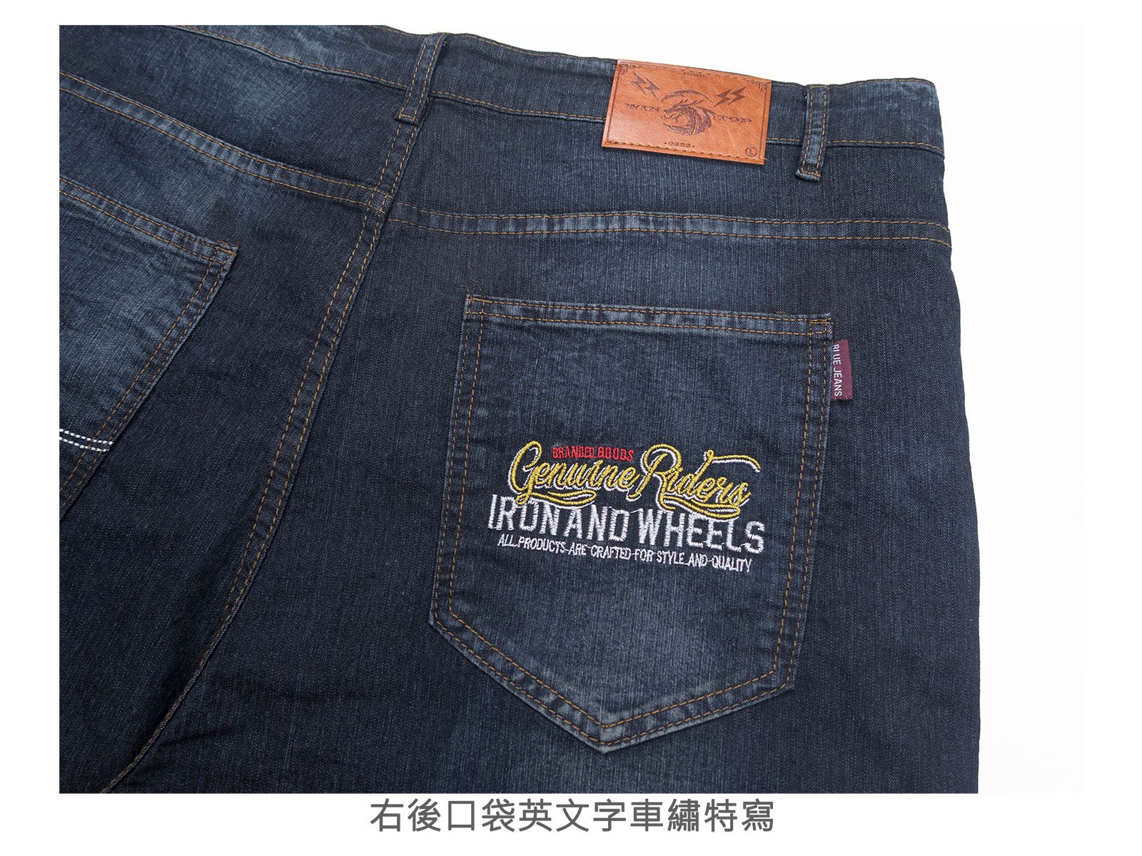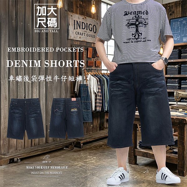 sun-e加大尺碼牛仔短褲、彈性牛仔褲、大尺碼短褲、英文字車繡後口袋丹寧短褲、大尺碼男裝、刷白牛仔褲、Big And Tall Jeans Shorts、Embroidered Pocket Denim Jeans、Stretch Jeans、Embroidered Pockets (307-7635-21)深牛仔 腰圍:42~50英吋 (107~127公分) 男 [實體店面保障]
