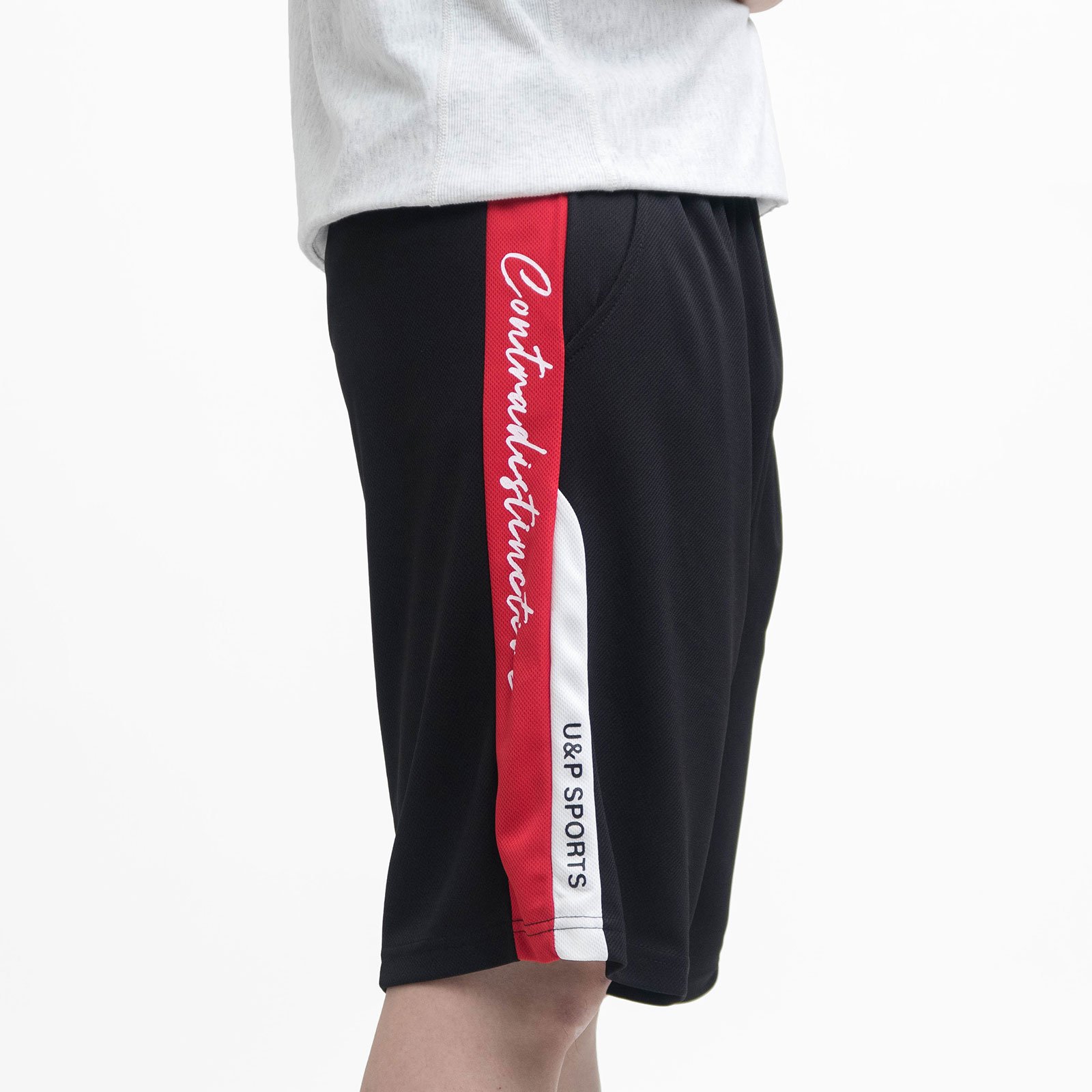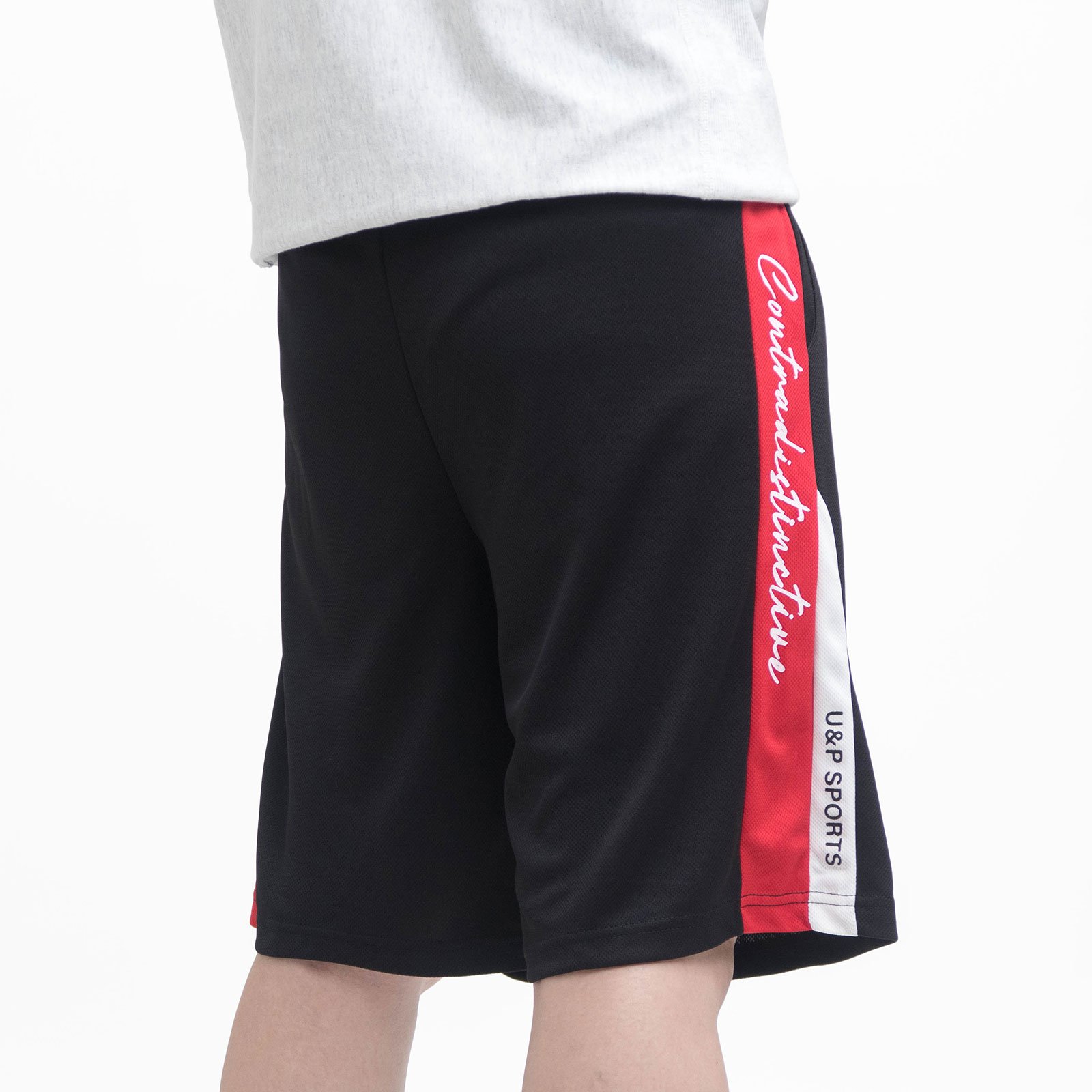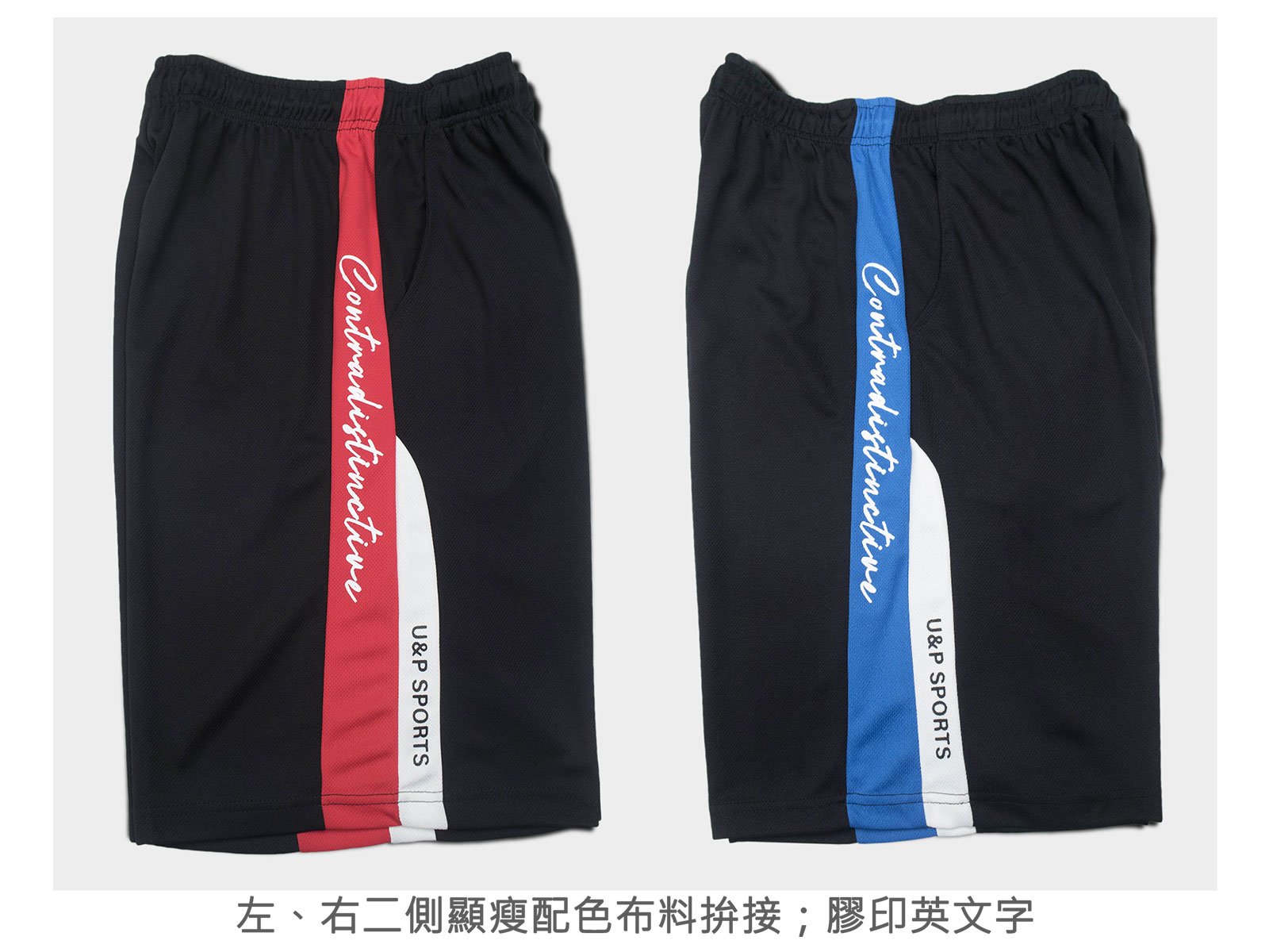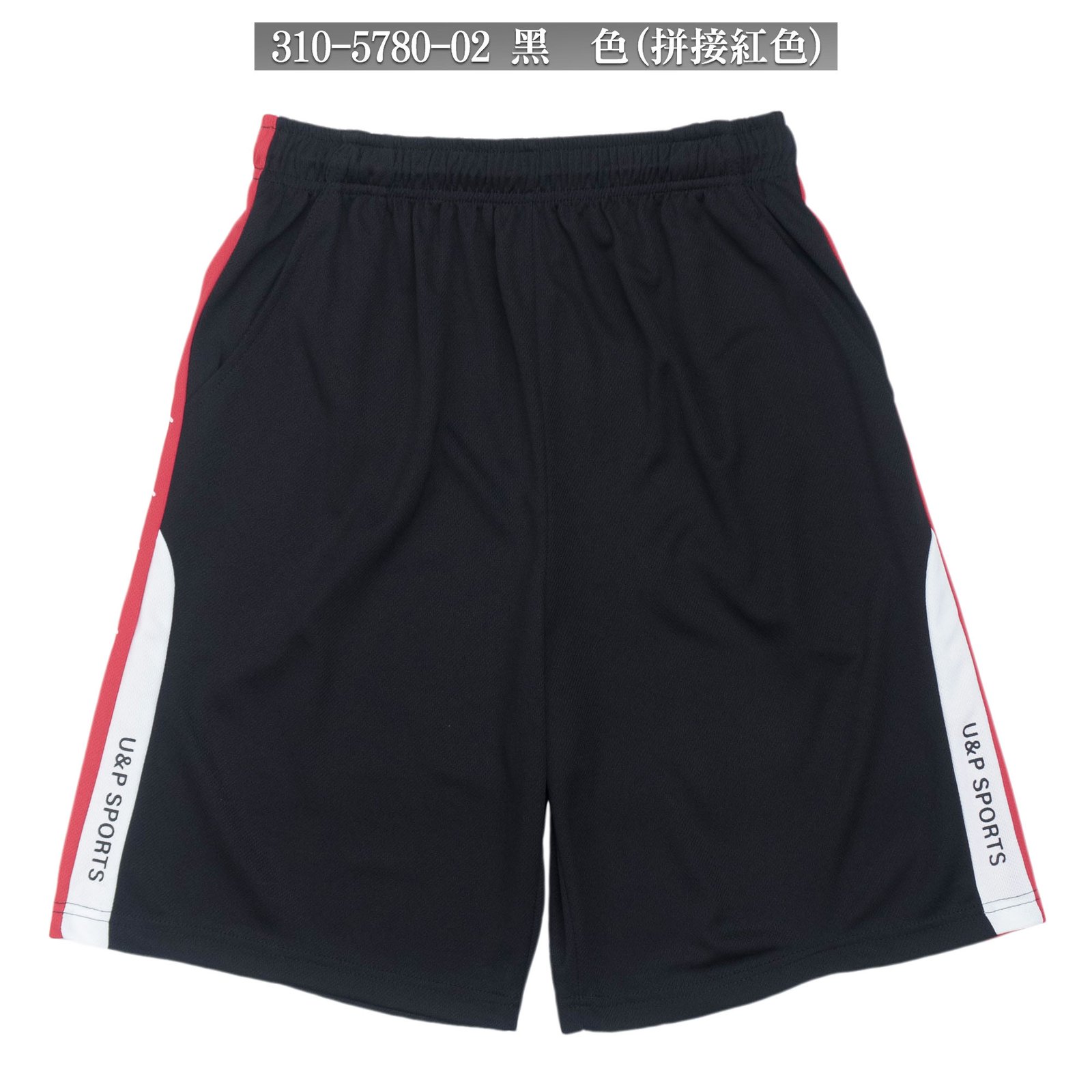 sun-e吸濕排汗短褲、台灣製運動短褲、排汗速乾彈性短褲、鬆緊腰球褲、休閒短褲、機能性布料休閒褲、顯瘦配色布料拚接運動褲、黑色短褲、Moisture Wicking Shorts、Made In Taiwan Athletic Shorts、Elastic Waist Sport Shorts、Casual Shorts、Quick Drying Breathable Fabric Short Pants (310-5780-02)黑色拼接紅色、(310-5780-09)黑色拼接藍色 L XL (腰圍:28~39英吋 / 71~99公分) 男 [實體店面保障]