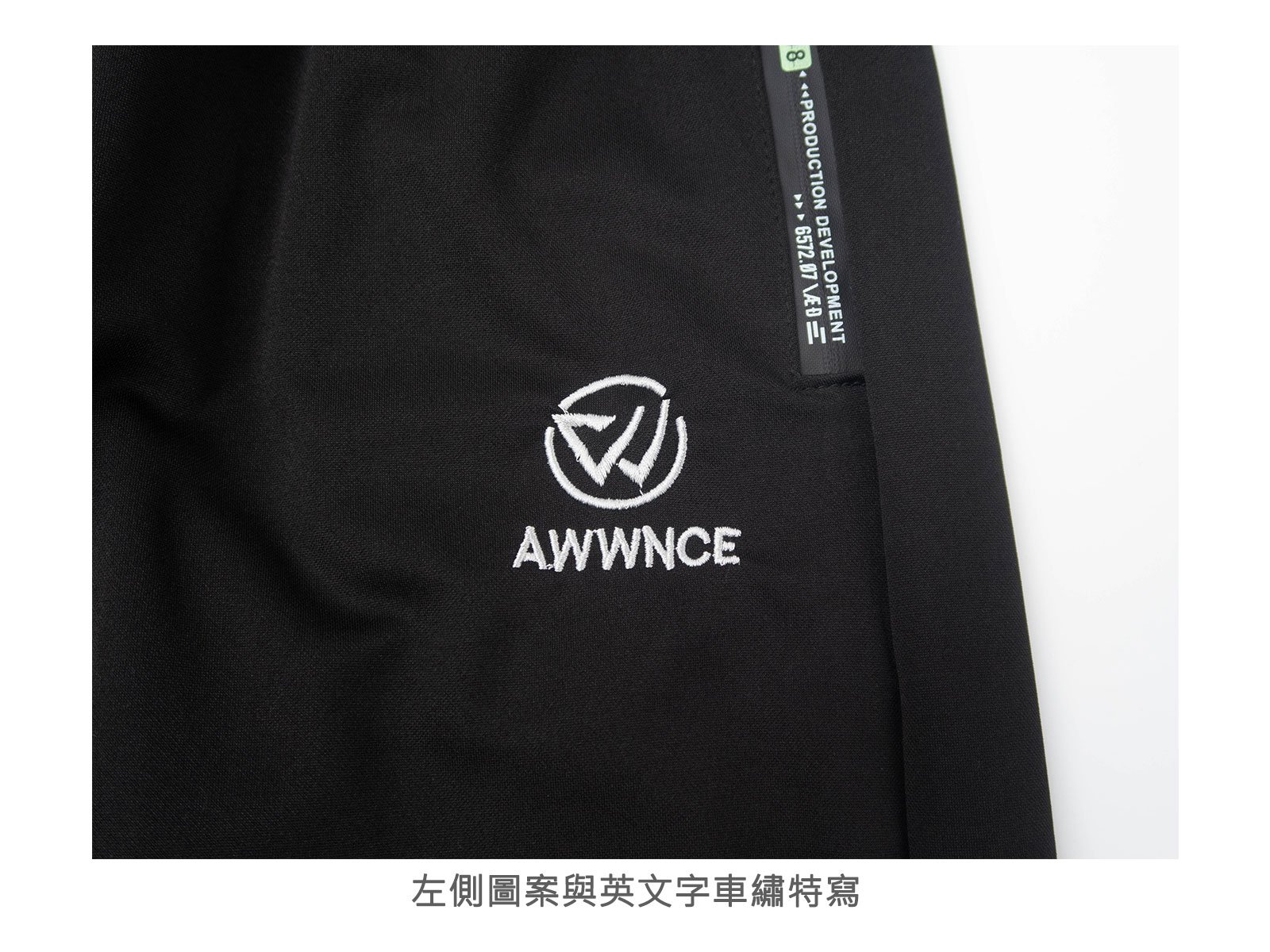 左側圖案與英文字車繡。