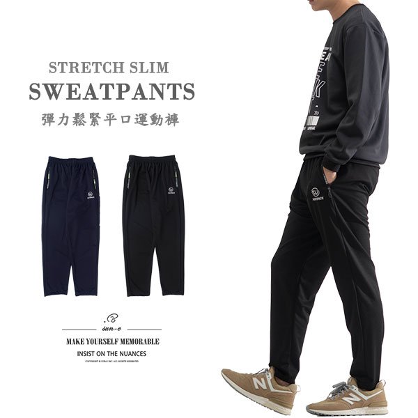 sun-e彈力鬆緊平口運動褲 修身休閒褲 鬆緊腰圍休閒長褲 運動長褲 Sweat Pants Casual Pants (312-7236-08)深藍色 (312-7236-21)黑色 L XL 2L(腰圍:26~37英吋/66~94公分) 男 [實體店面保障]