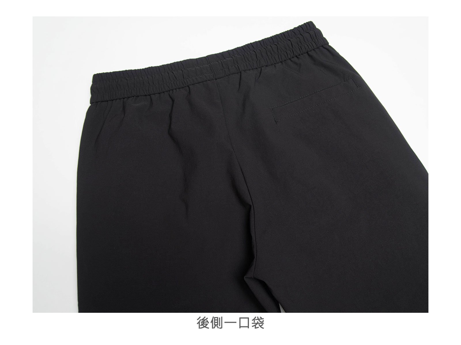 全腰圍彈性鬆緊帶,前拉繩設計可自行調整腰圍大小。