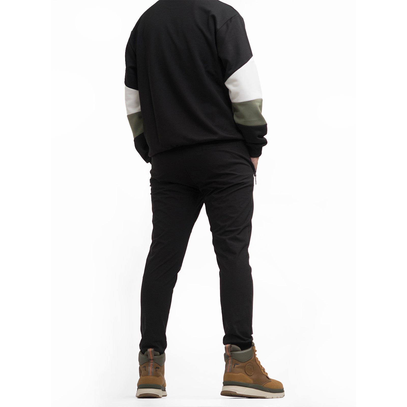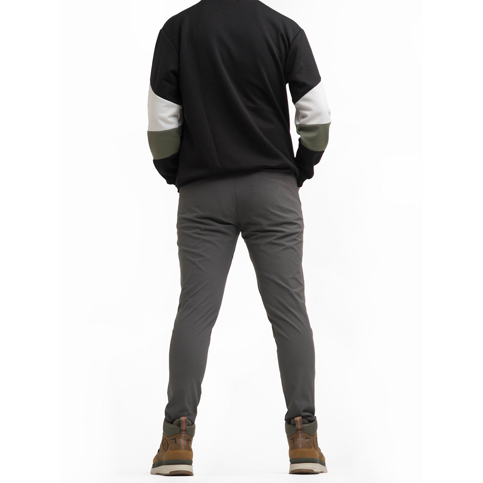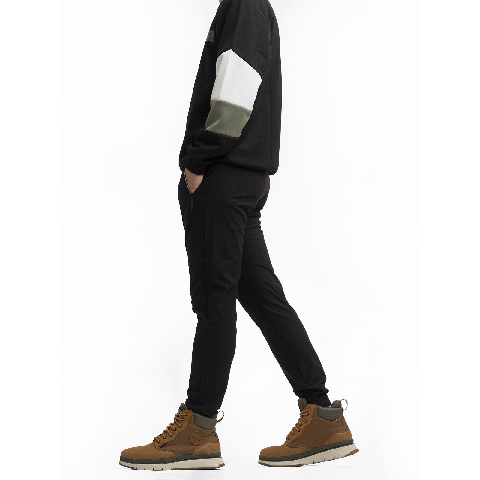 顯瘦韓系潮流束腳休閒長褲,彈力布料搭配全鬆緊腰設計,時尚運動風格舒適,個性品味穿著。